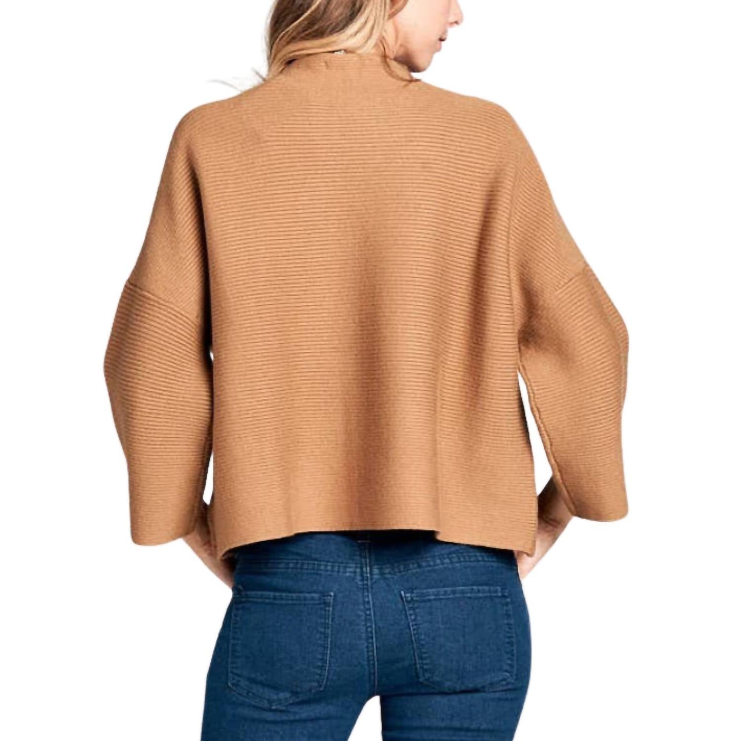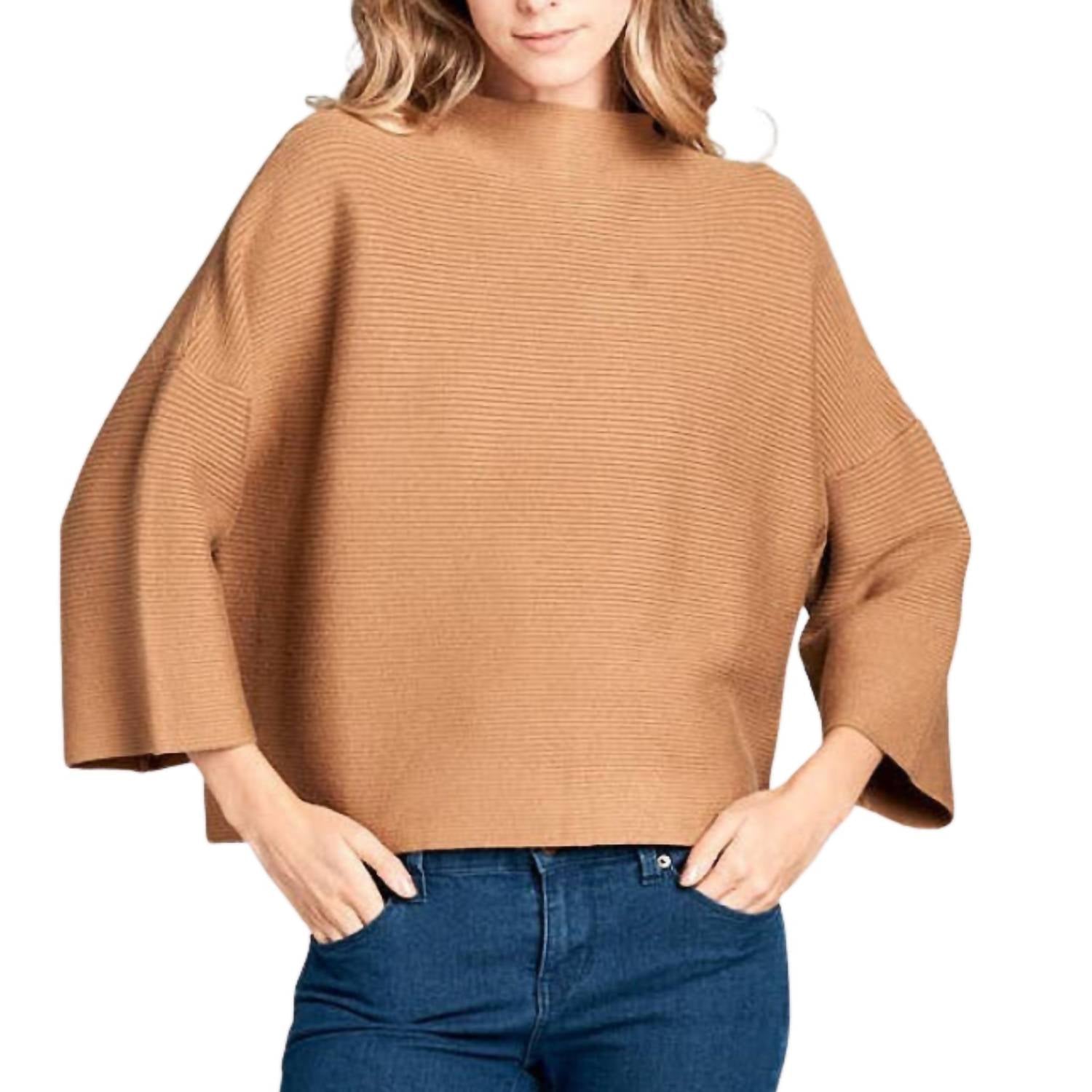Add a chic touch to your winter wardrobe with Ellison's Not Your Casual Top, crafted in a warm camel hue. Featuring a mock neck and three-quarter sleeves, this slightly ribbed sweater is composed of a luxurious blend of 52% viscose, 28% polyester, and 20% nylon. Its textured design and pull-on closure ensure both style and comfort for any casual outing. Care for this essential piece by washing cold and hanging to dry.