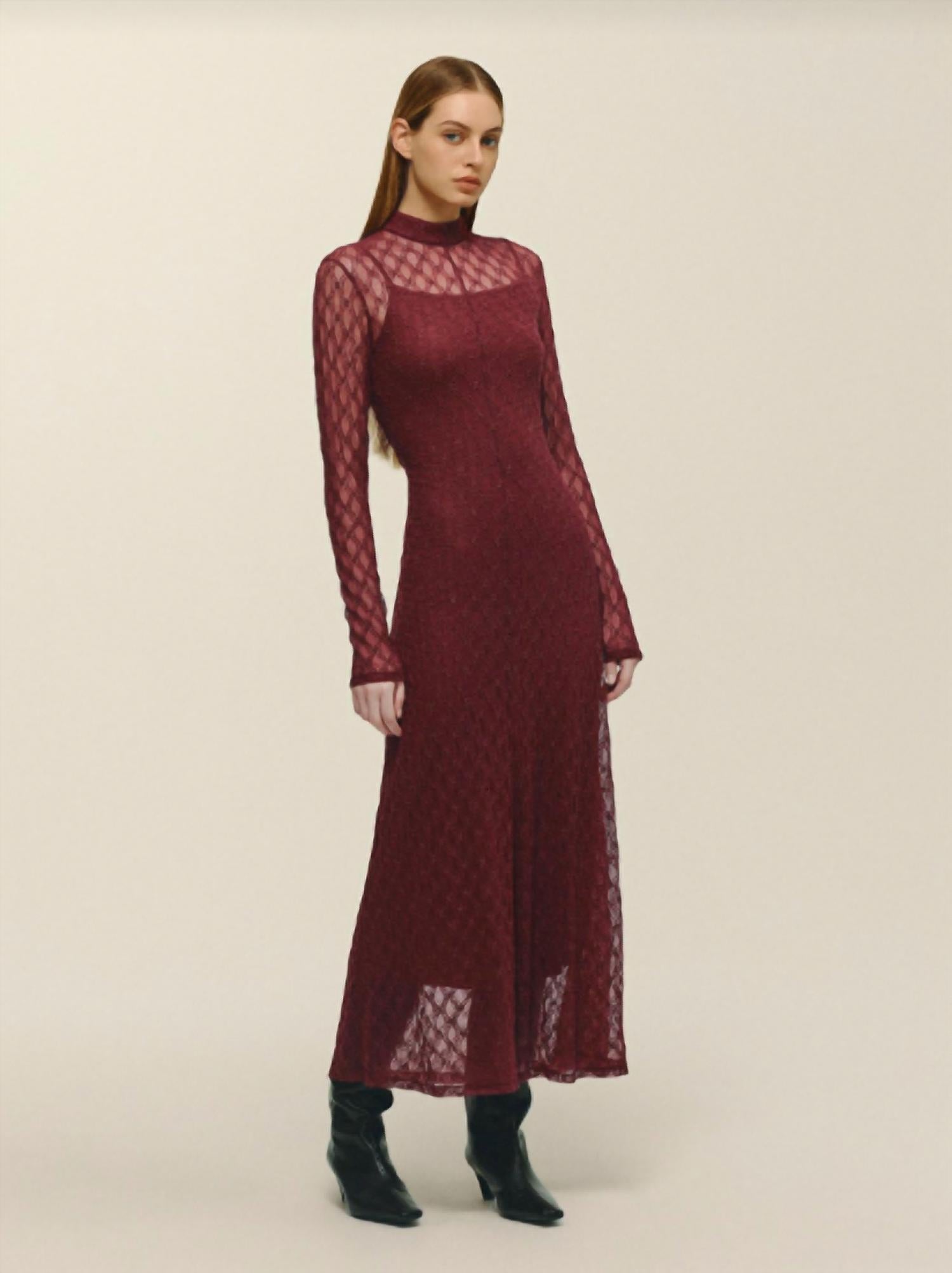 Who doesn't love a good maxi dress? This one you'll be reaching for season after season. Introducing the Elodie Women's Lina Lace Dress in captivating Red Dahlia. This maxi dress features elegant long sleeves and a romantic lace overlay that exudes timeless sophistication. Designed with an A-line silhouette and a crewneck, it offers a flattering fit with a pull-on closure for ease of wear. Perfect for vacation or any special occasion, this dress embraces the quiet luxury trend.
