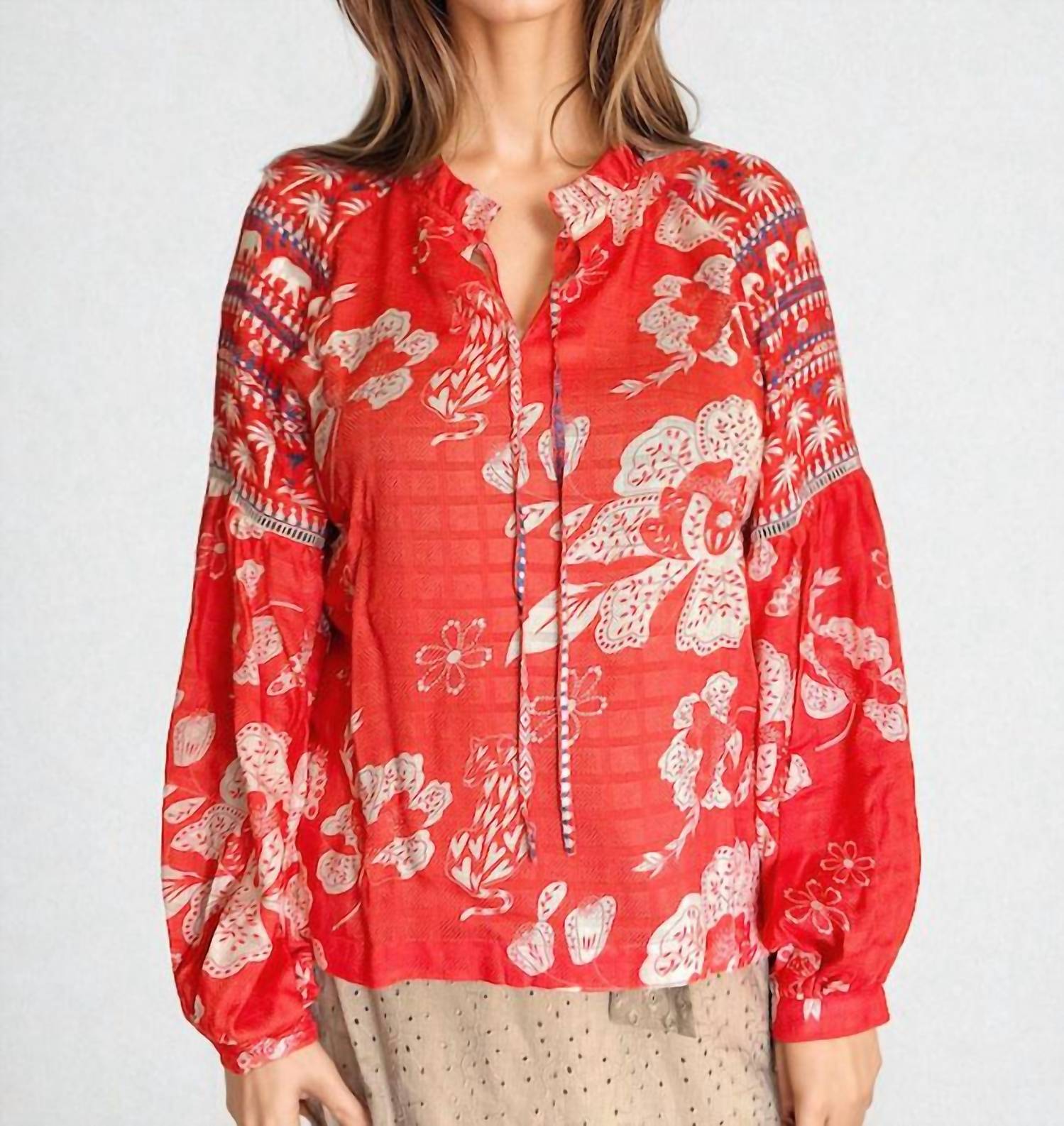 Uma blusa atemporal que nunca sai de moda. A blusa EMMA Coral Batik Print da Emily Lovelock está deslumbrante na combinação favorita de vermelho coral, off-white com toques de azul! Emma é sempre uma opção perfeita para completar o seu look do dia a dia. As estampas personalizadas da Emily Lovelock em rayon fluido são sempre um assunto para conversas e com certeza vão alegrar o seu dia.