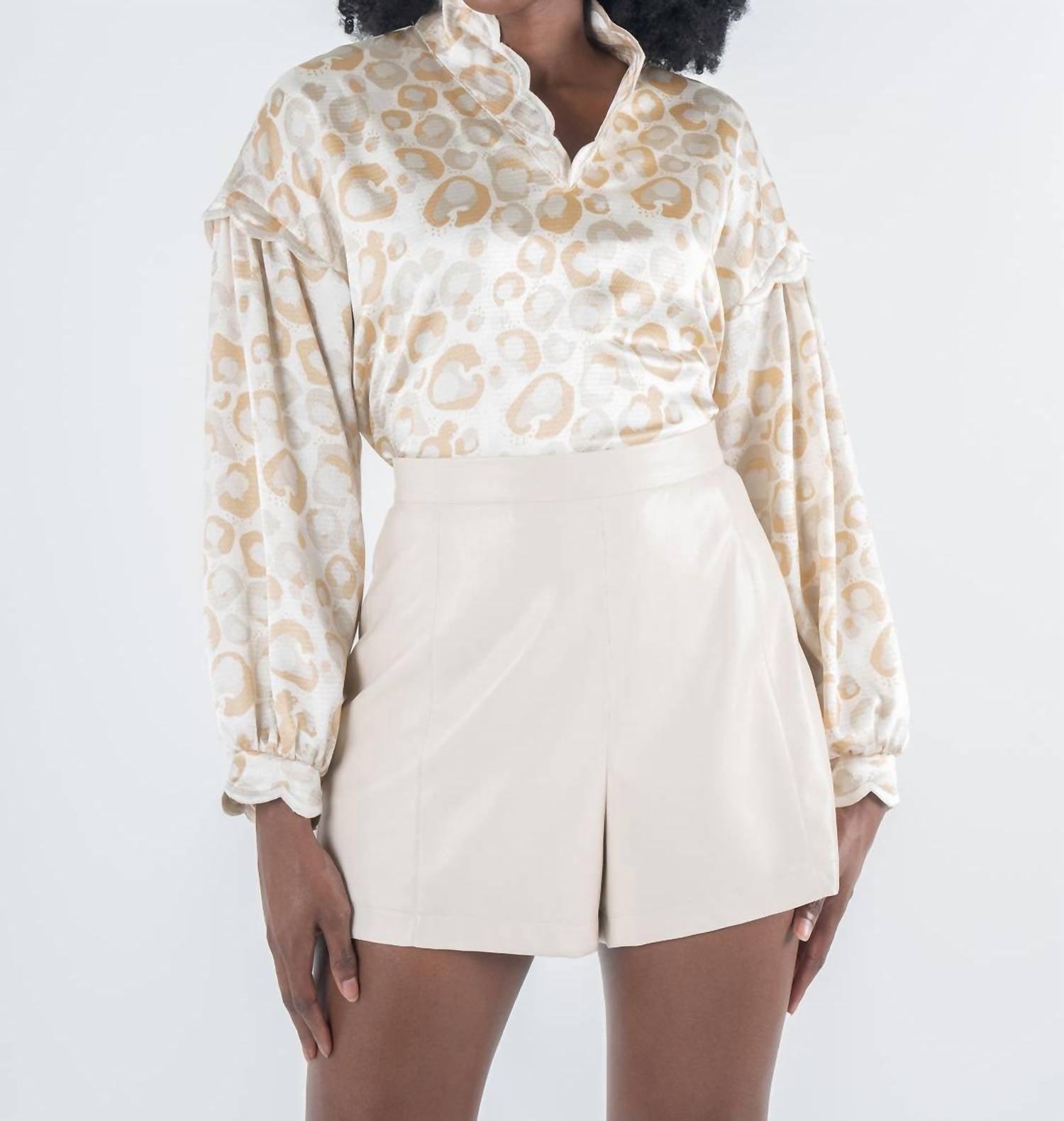 Unleash your wild side with the Orchid Top by Emily McCarthy, featuring a striking Neutral Freckle Spot Cheetah pattern. This women's blouse embodies boho chic with its long sleeves and stylish collar neckline. Crafted from comfortable polyester, it is perfect for a spring holiday or Thanksgiving gathering. Closure is a convenient pull-on style.