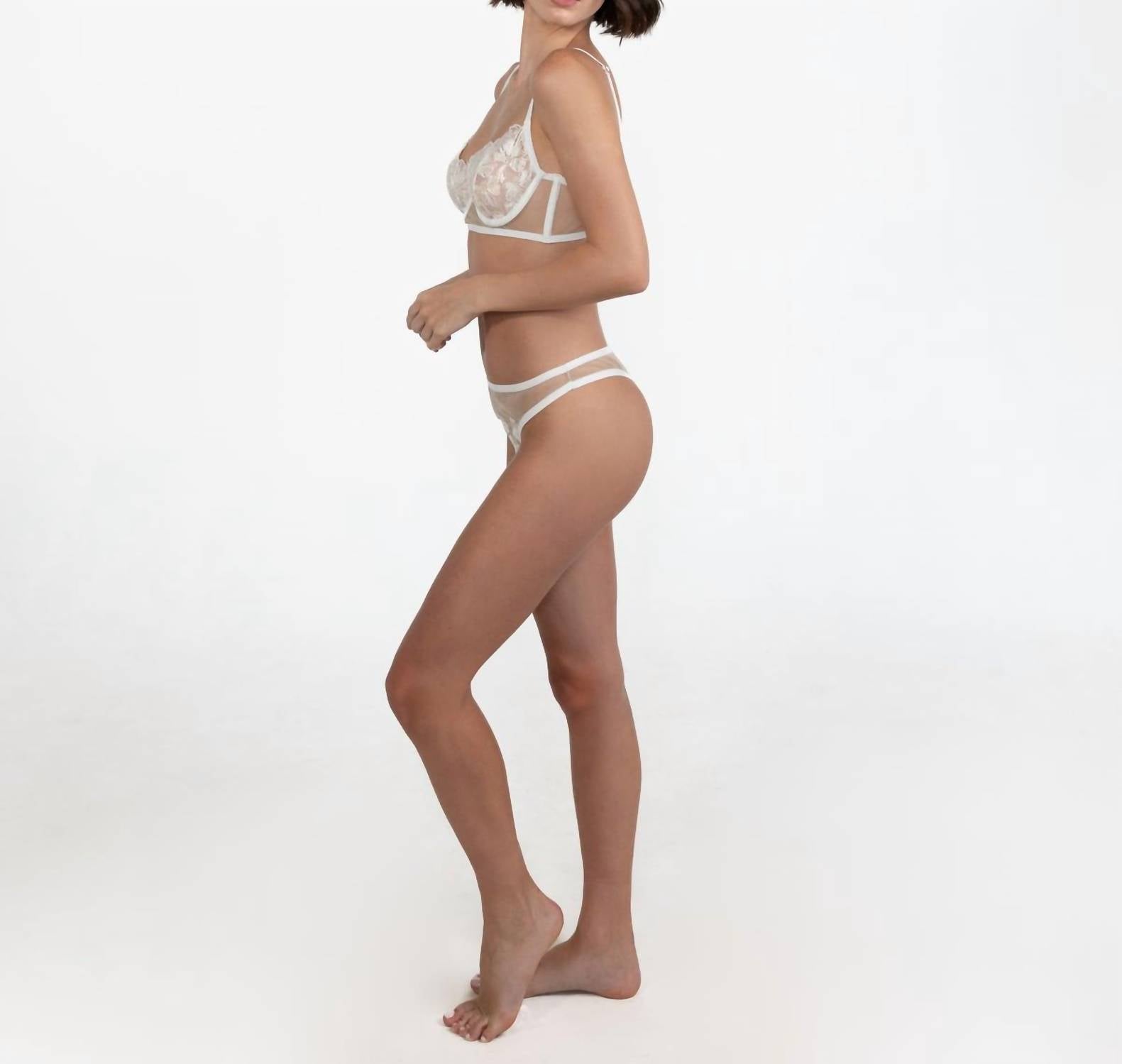 Este sutiã será seu novo favorito. Delicie-se com a elegância do Sutiã Entos Odette, um bralette lindamente confeccionado para aqueles dias especiais. Feito de renda macia e luxuosa com aplicações sofisticadas de veludo, este sutiã oferece conforto e estilo. Ideal para aniversários e Dia dos Namorados, ele vem em uma cor branca deslumbrante. As instruções de cuidado recomendam lavar à mão para maior durabilidade. Observação: Projetado com um ajuste menor, considere comprar um tamanho maior.