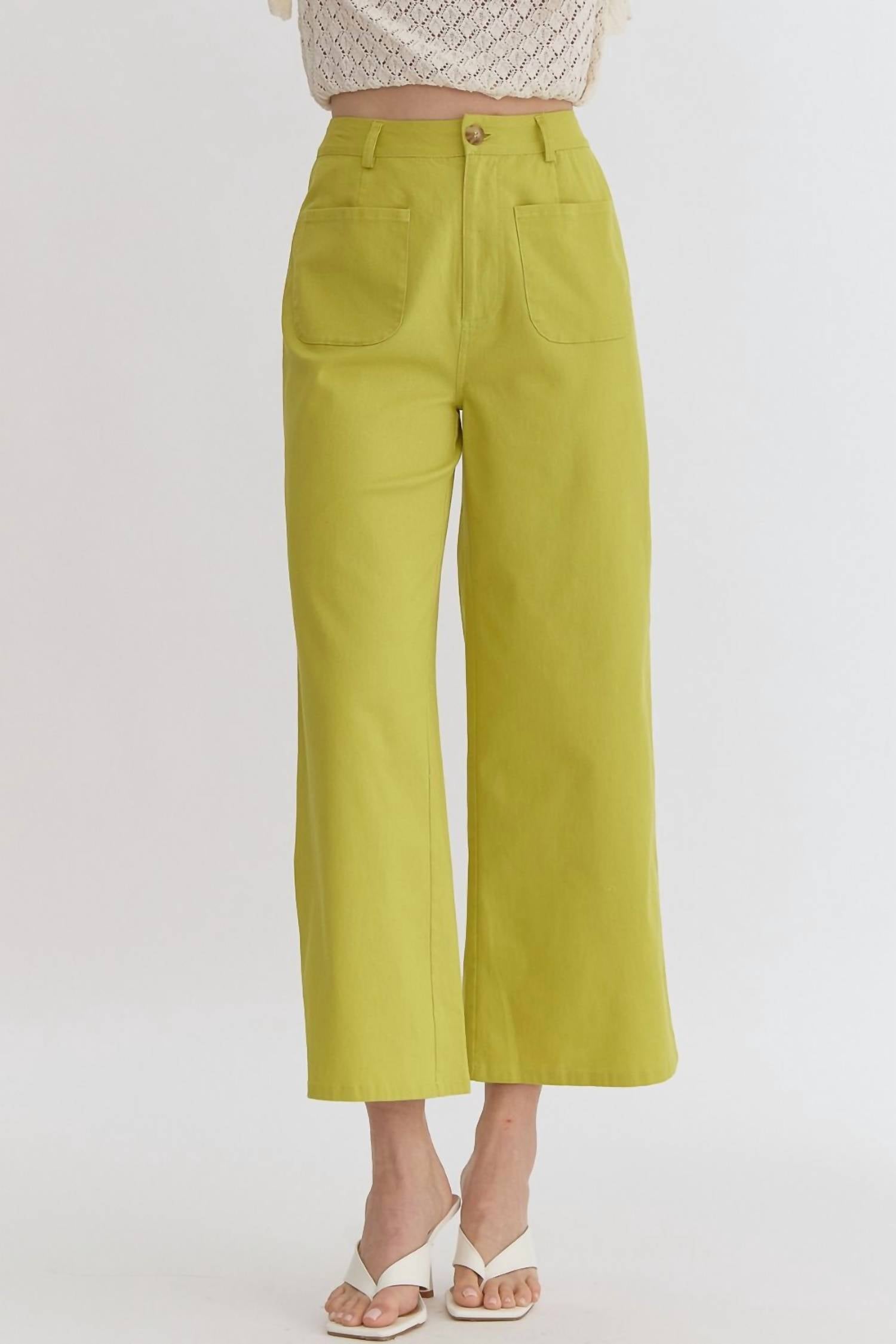 Apresentamos a Calça Calm Feeling Twill da Entro, uma adição chique ao seu guarda-roupa em um tom vibrante de Margarita Lime. Esta calça possui um corte largo e bolsos frontais práticos, adicionando sofisticação e funcionalidade ao seu visual. Composta por 97% algodão e 3% elastano, ela oferece um caimento confortável e relaxado, perfeito para qualquer ocasião.
