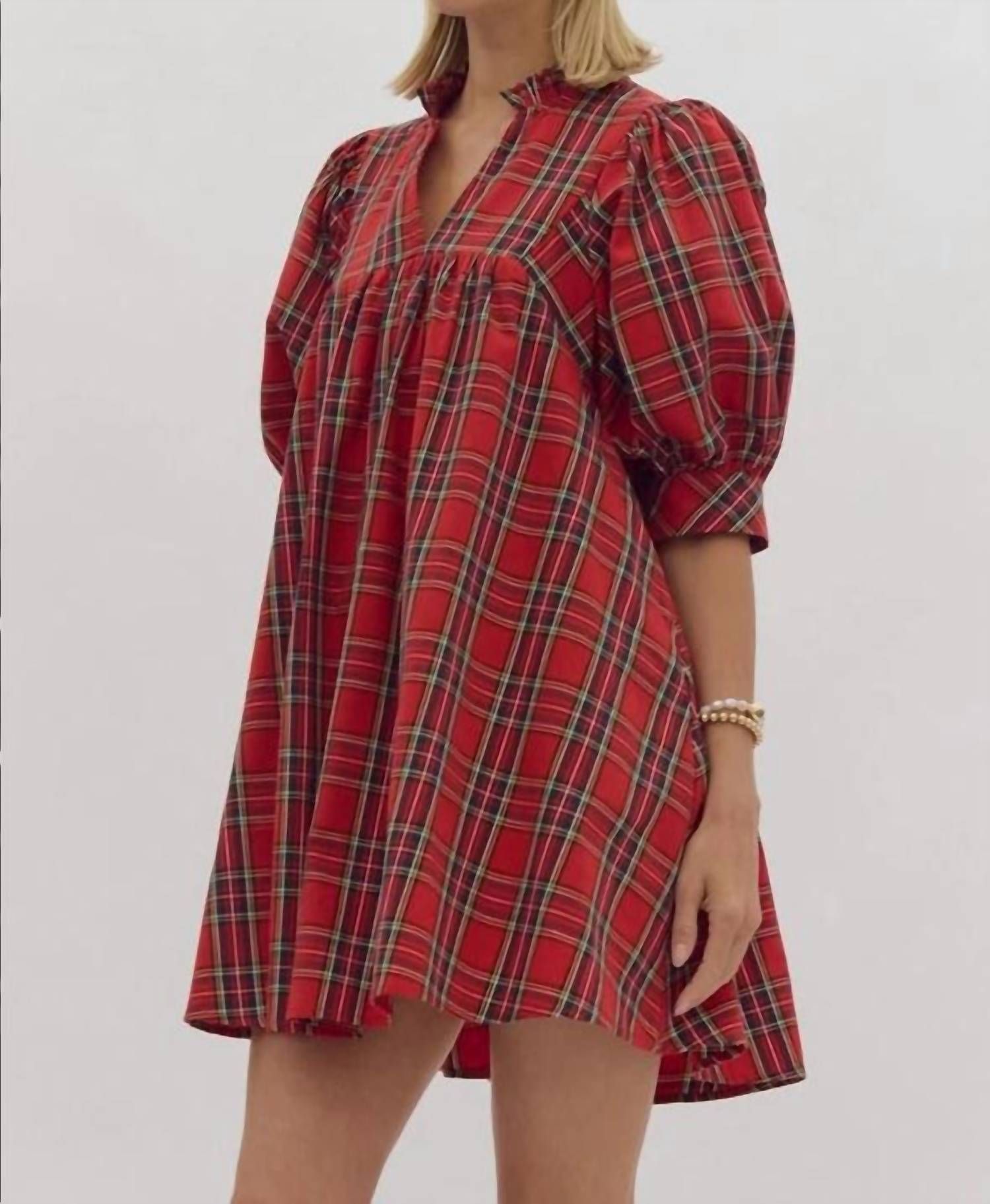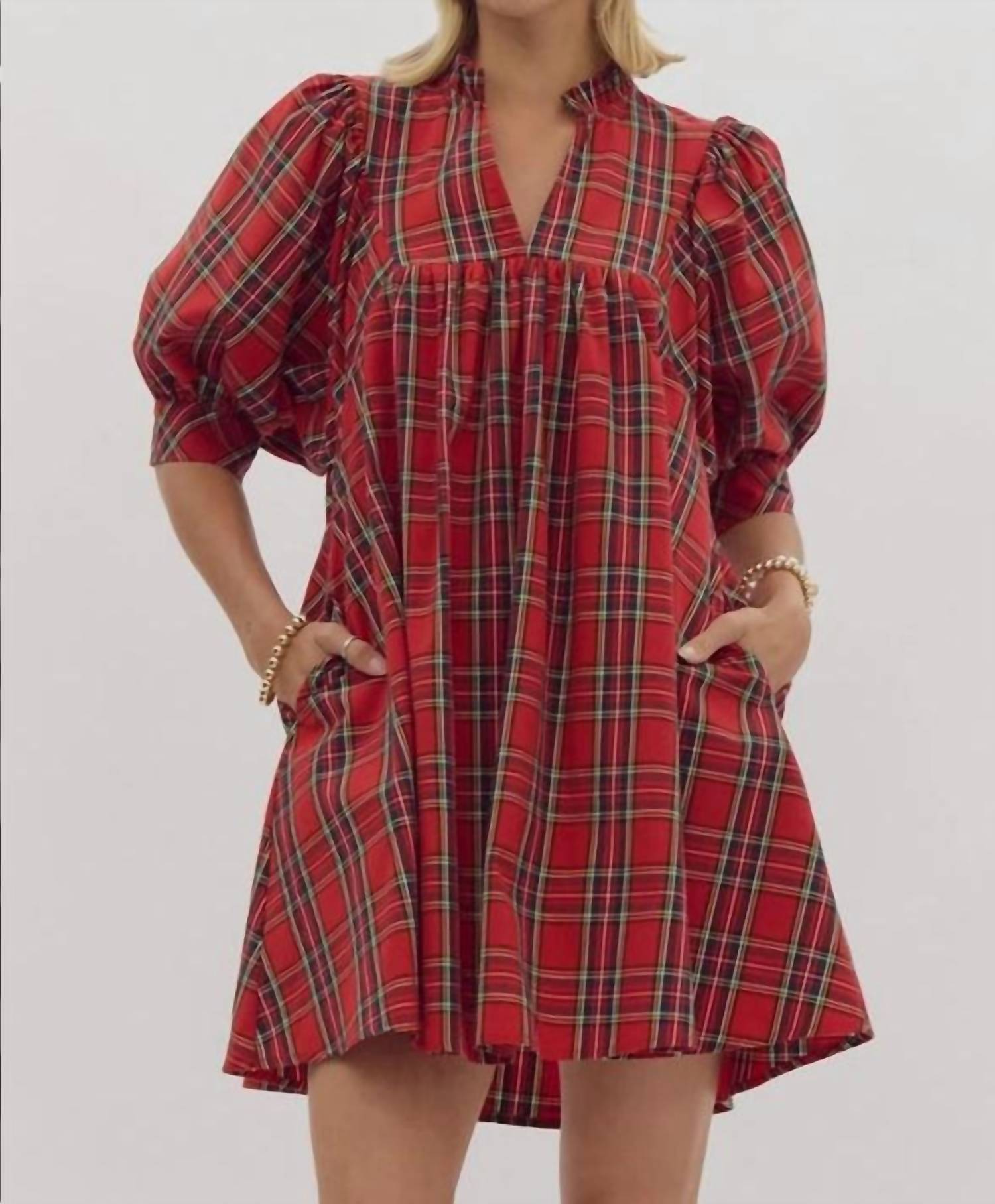 Este minivestido apresenta uma estampa xadrez clássica, um decote em V charmoso e mangas bufantes modernas. Inclui bolsos, fecho de botão nos punhos e decote com babados. Feito em 100% poliéster.