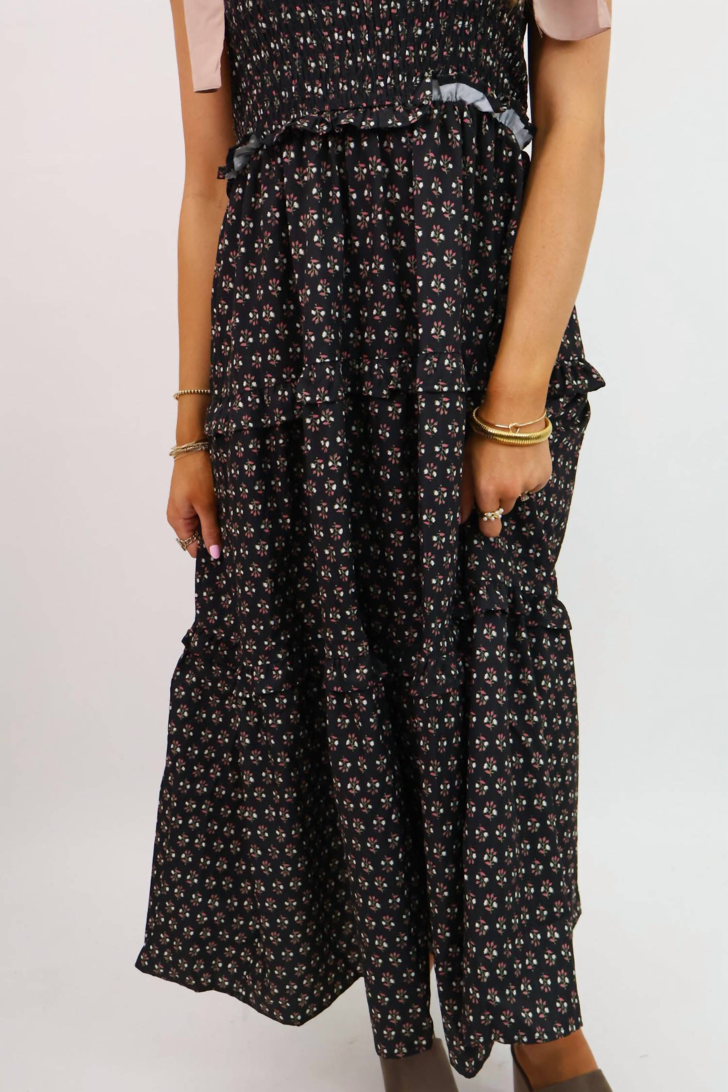 Entro - Floral Print Midi Dress With Pink Shoulder Ties