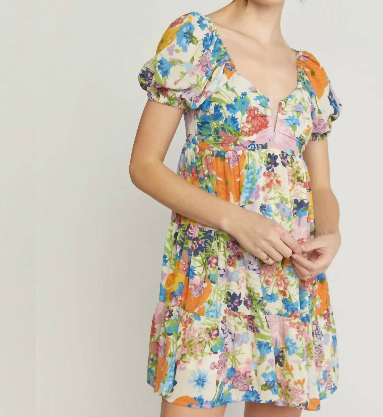 The kind of easy and flattering dress you'll be reaching for all season long. Embrace boho chic style with the Floral Print V-neck Puff Sleeve Babydoll Dress by Entro, perfect for any summer vacation. Designed for women, this cream mini dress features short puff sleeves and an empire waist silhouette, offering a playful yet elegant look. Made from lightweight 100% polyester material with a woven, non-sheer lining, it includes an elastic shoulder and cuff for a snug fit and a side zipper closure for ease of wear. Complete your ensemble with this trendy v-neck dress, seamlessly blending floral patterns with functionality.