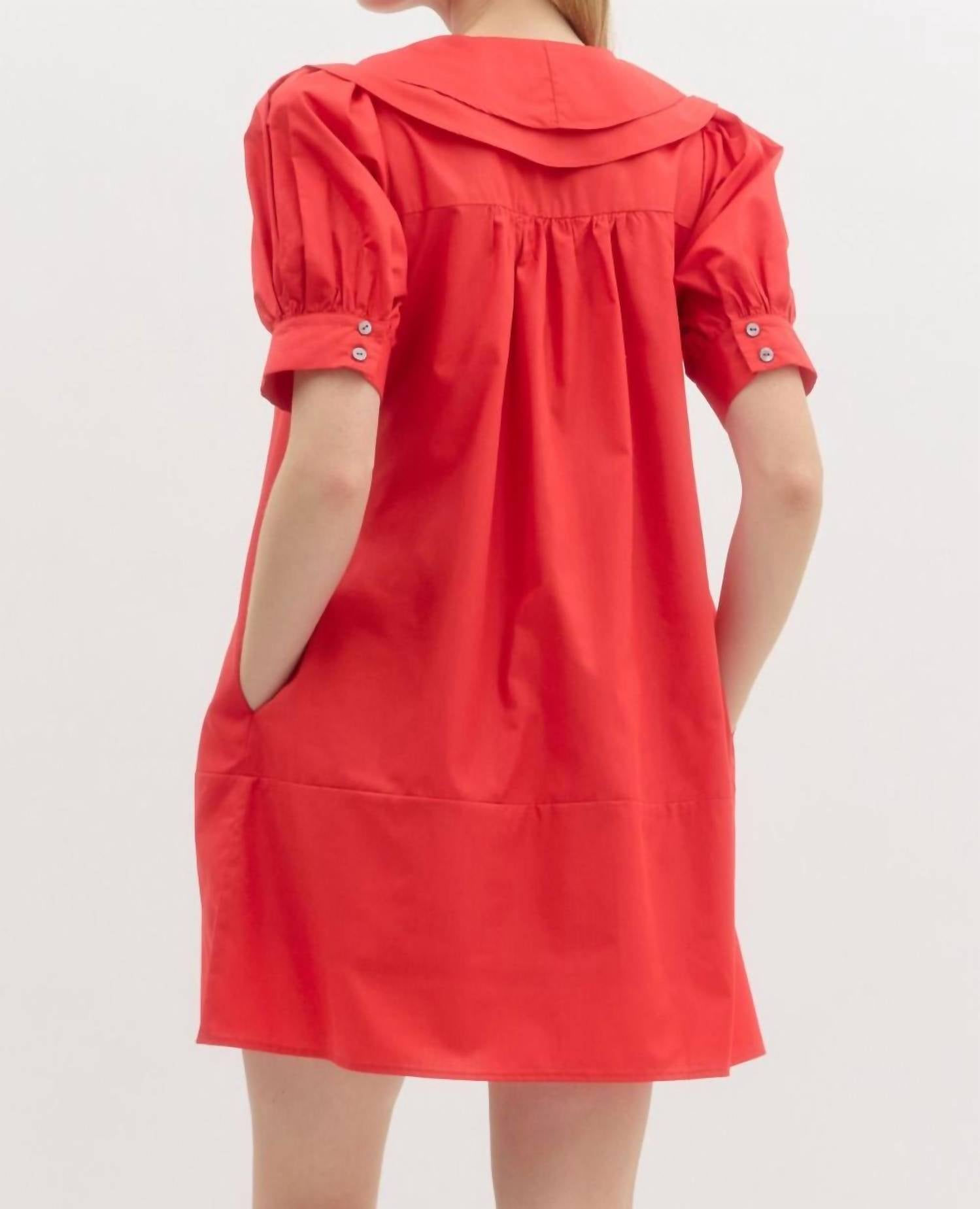 O minivestido perfeito para os meses mais quentes. Apresentamos o Lady Dress da Entro, um minivestido vermelho chique que combina estilo e conforto com naturalidade. Com mangas curtas bufantes e elegante gola estilo marinheiro, este vestido com corte reto é perfeito para qualquer ocasião. Projetado com praticidade em mente, possui bolsos laterais e é totalmente forrado. Fechamento: Pull-on. Cuidados: Lavar à máquina.