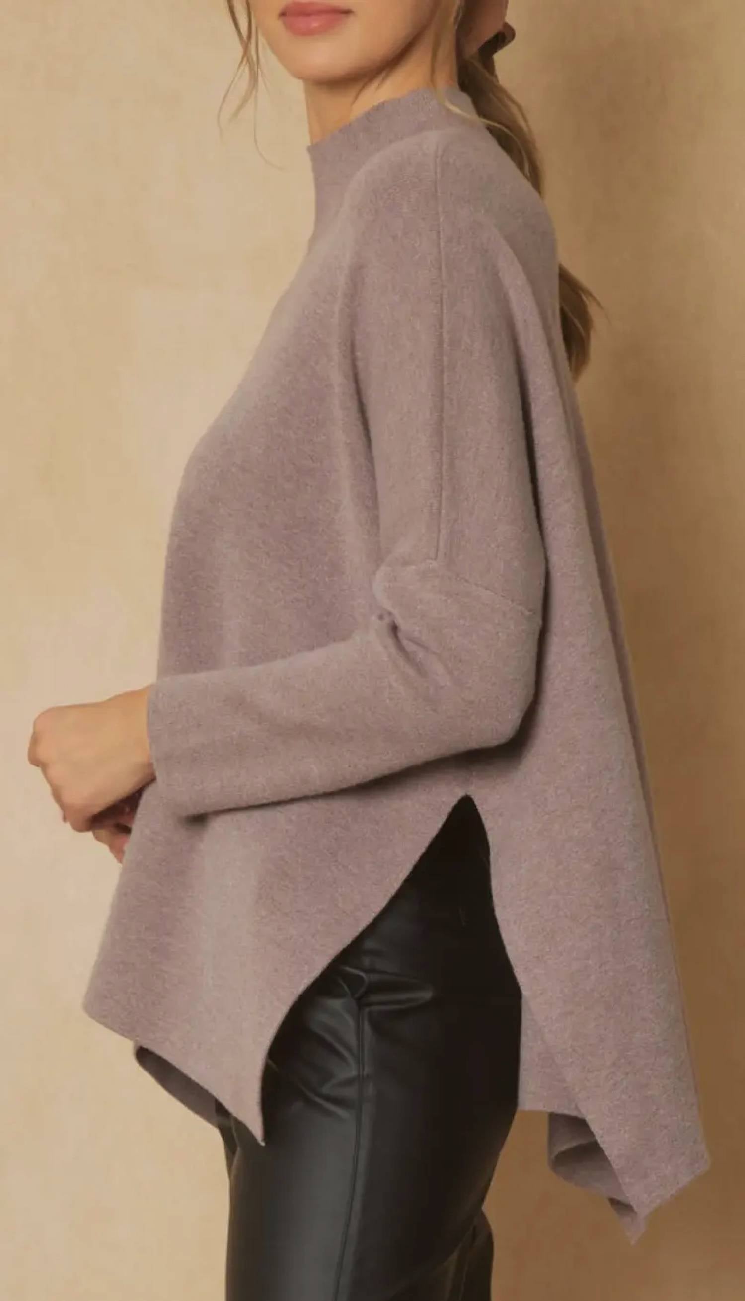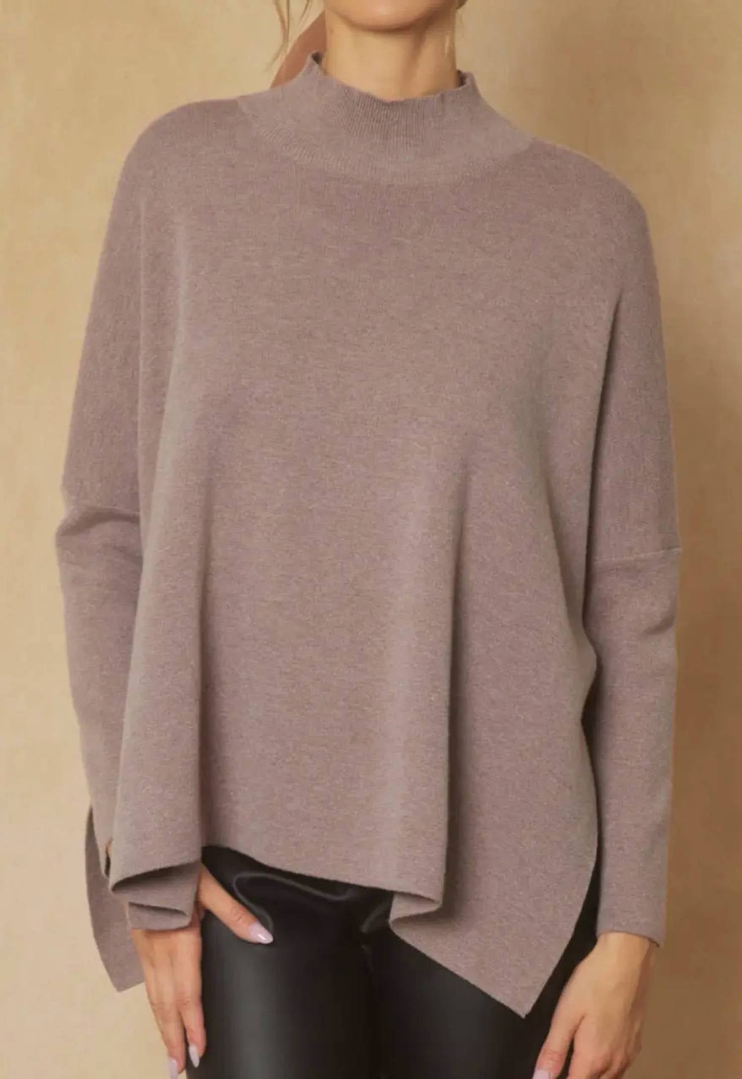 A classic staple that every closet needs. Elevate your fall wardrobe with the Entro Mock Neck Sweater, a minimalist piece in a solid mocha shade designed for stylish evening events. This women's top features elegant long sleeves and side slits for a modern touch. Closure: Pull on. Care: Hand wash only and lay flat to dry.