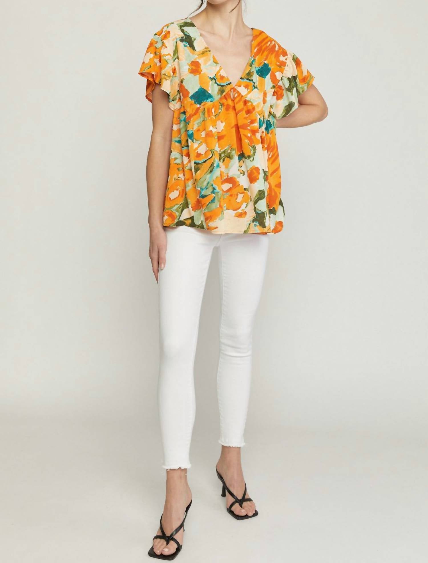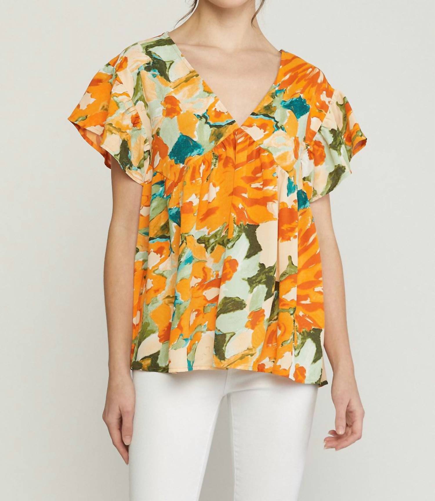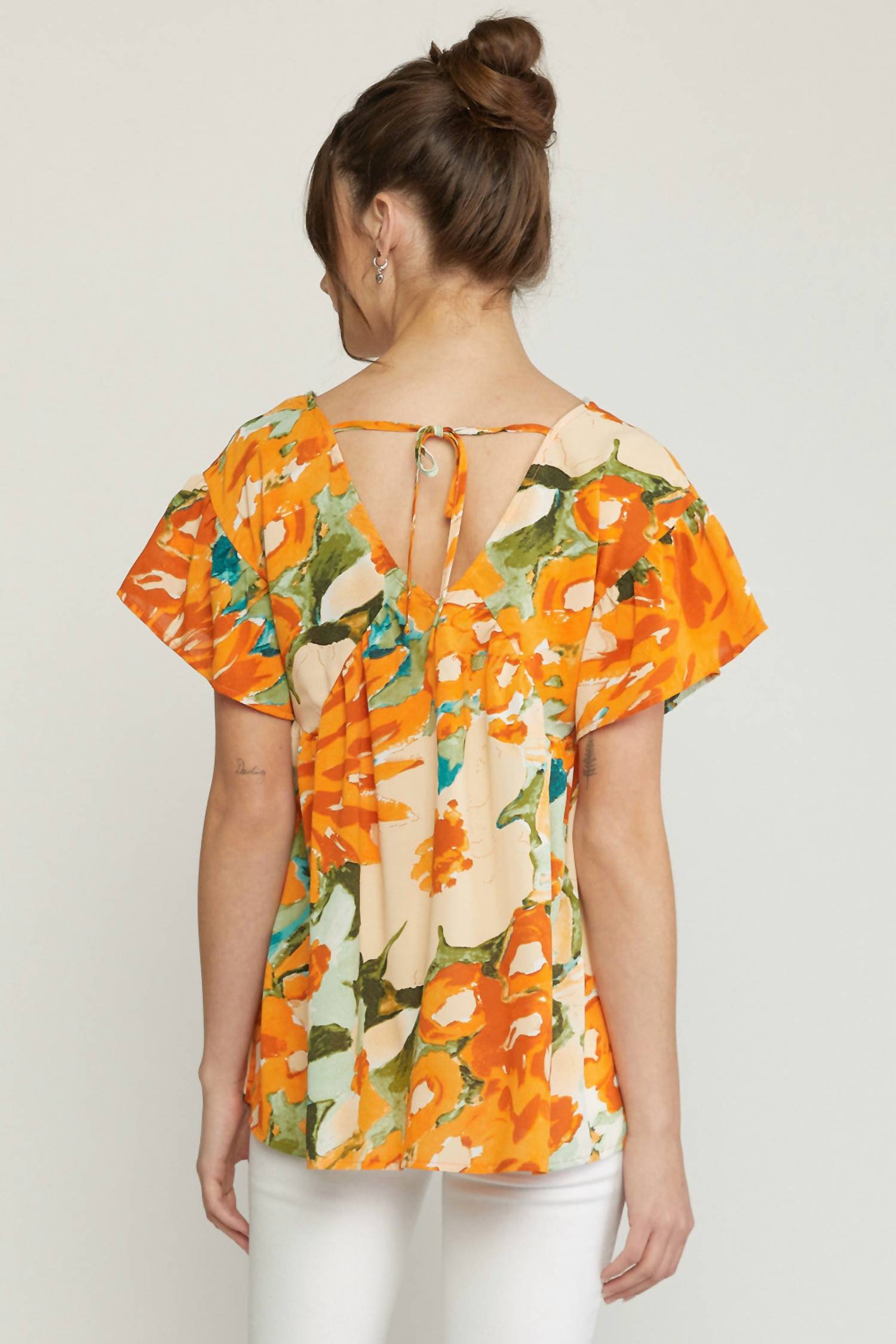 Uma blusa versátil que vai do escritório ao jantar! Blusa babydoll estampada, decote em V, manga curta e amarração nas costas. Sem forro. Tecido. Não transparente. Leve. Gola V. Caimento regular. Não estica. Tecido