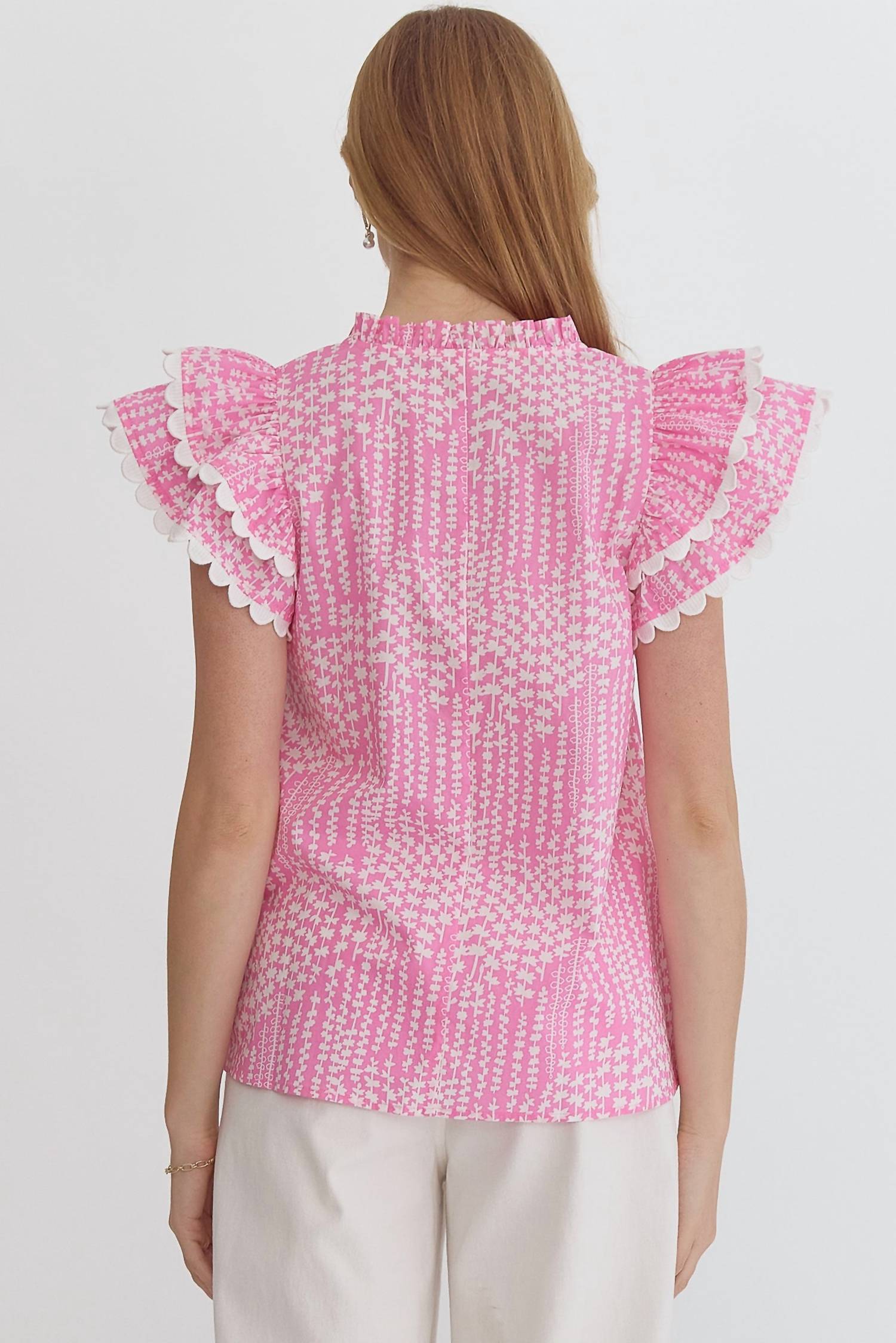 Uma blusa versátil que vai do escritório ao jantar! Blusa listrada com decote em V, mangas franzidas e acabamento em ric-rac. Fechamento por botão nas costas. Sem forro. Tecido. Não transparente. Leve.