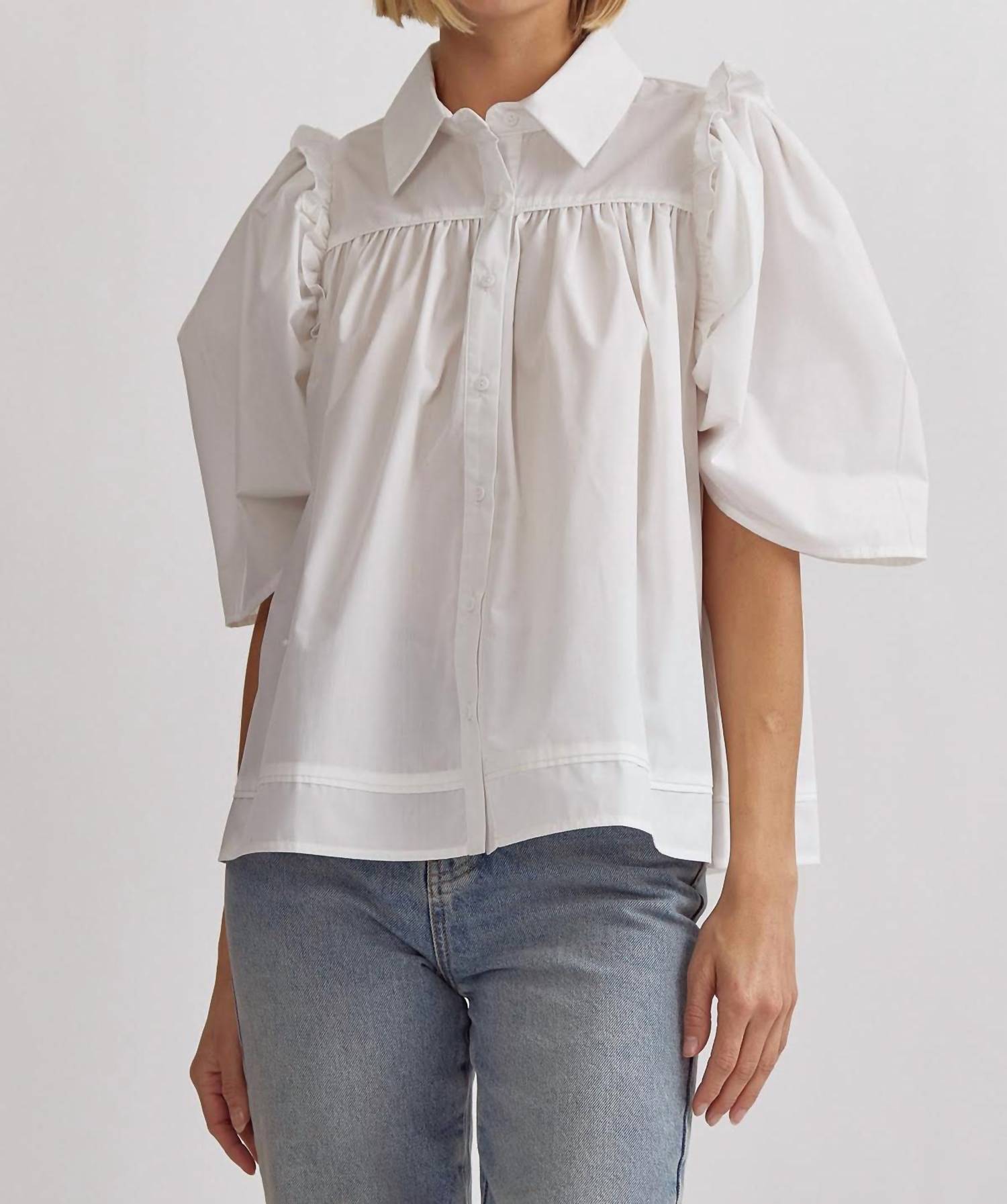 Entro - Blusa com botões e mangas franzidas