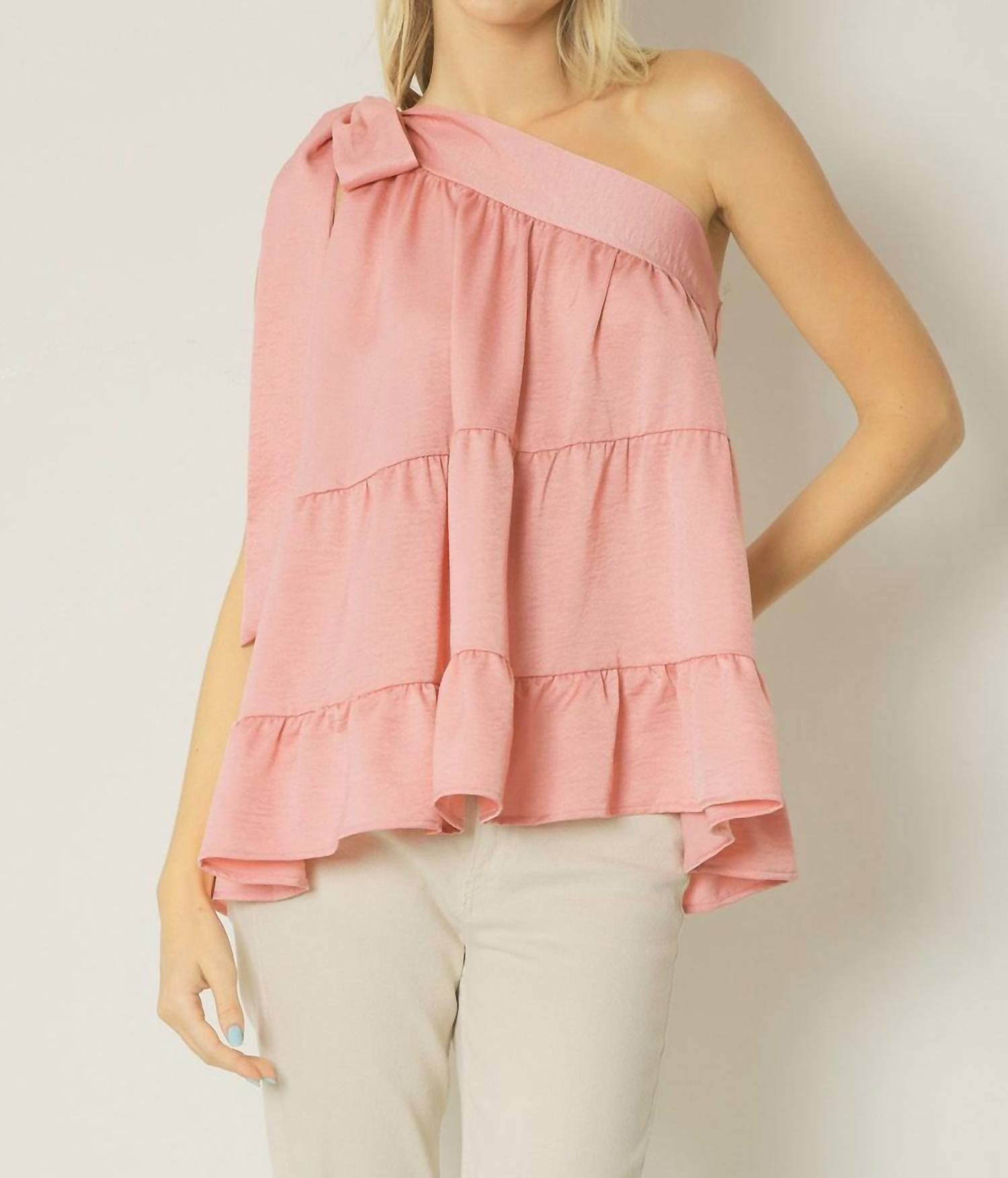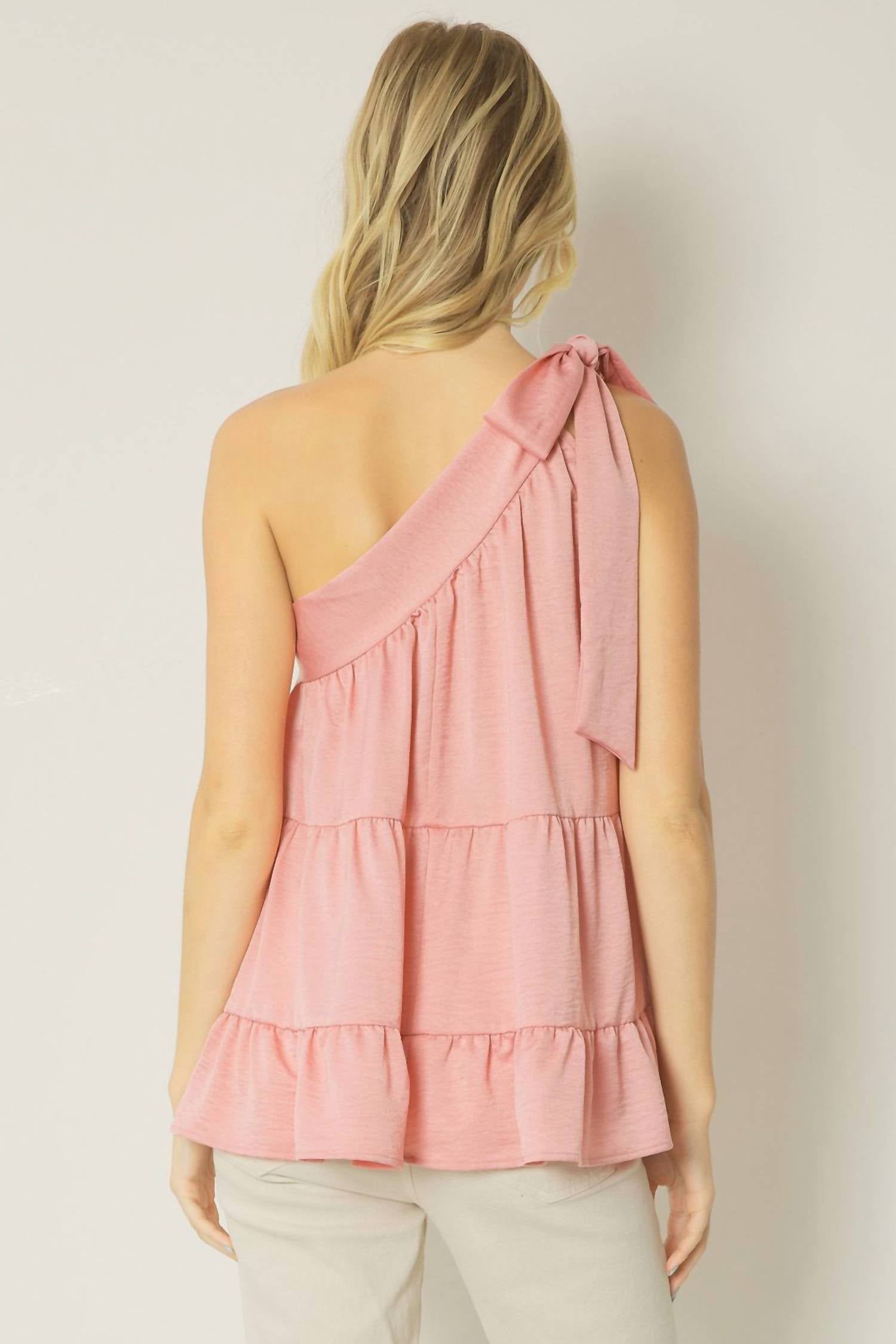 Uma blusa atemporal que nunca sai de moda. Blusa de um ombro só em camadas de cetim liso com detalhe de amarração no ombro. Sem forro. Tecido. Não transparente. Leve. Tecido: 100% poliéster.