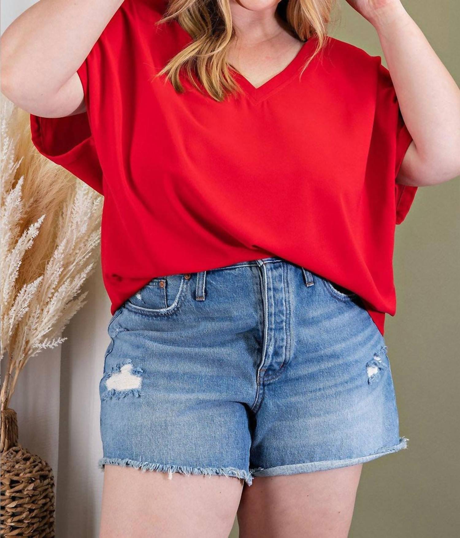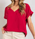 Introducing the Entro Short Sleeve V Neck Top, a chic piece in a rich wine hue designed for effortless elegance. This solid woven top features a flattering V-neckline and stylish cuffed short sleeves, offering a timeless look suitable for any occasion. With a pull-on closure for easy wear, it measures a length of 26 inches.