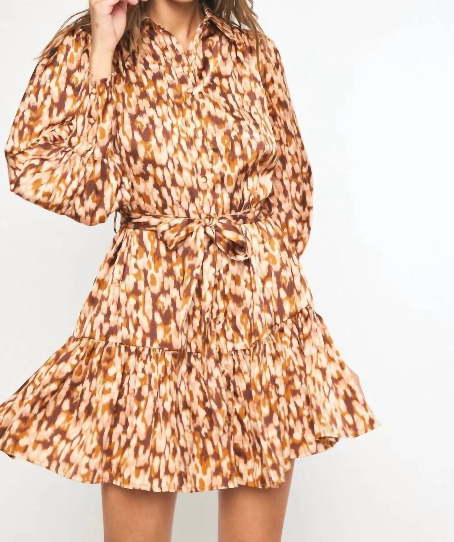 Make a statement with the Spotted Waist Tie Dress by Entro, a chic addition to any evening event wardrobe. This mini dress boasts long sleeves and a collared neckline, crafted from lightweight 100% polyester for a comfortable wear. It includes a removable self-tie belt for a customizable fit, with a convenient button closure. Care: Hand wash and line dry for best results.