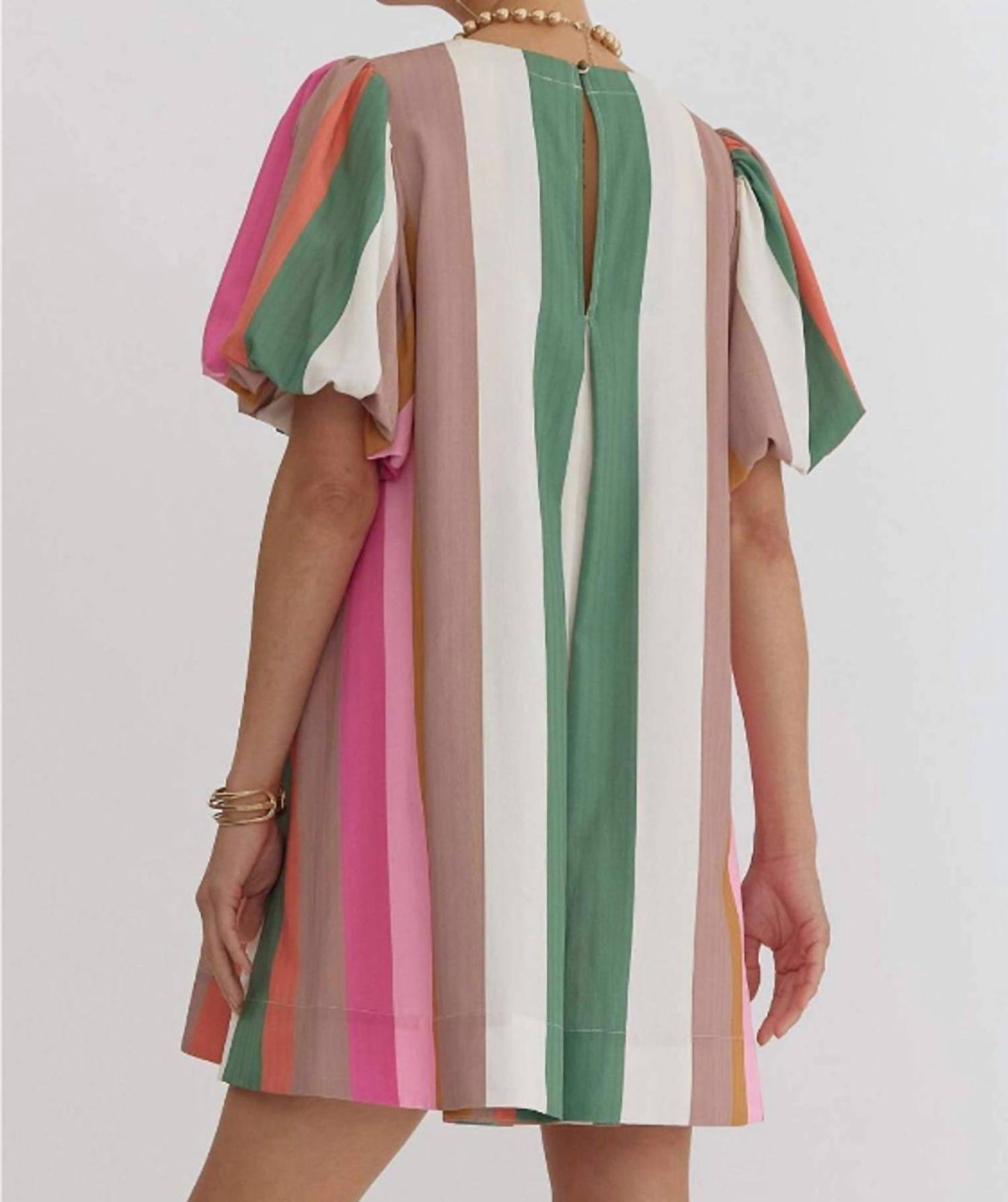 O tipo de vestido fácil e elegante que você vai usar durante toda a estação. Apresentamos o Vestido Multi Stripe da Entro, uma adição vibrante ao seu guarda-roupa, criado para a mulher moderna. Este minivestido evasê apresenta mangas curtas e gola redonda clássica, ideal para ocasiões casuais e chiques. Confeccionado em poliéster de alta qualidade, inclui bolsos práticos e possui um elegante padrão listrado. Com fecho de botão para um ajuste seguro, este vestido combina funcionalidade e estilo descontraído para qualquer passeio.