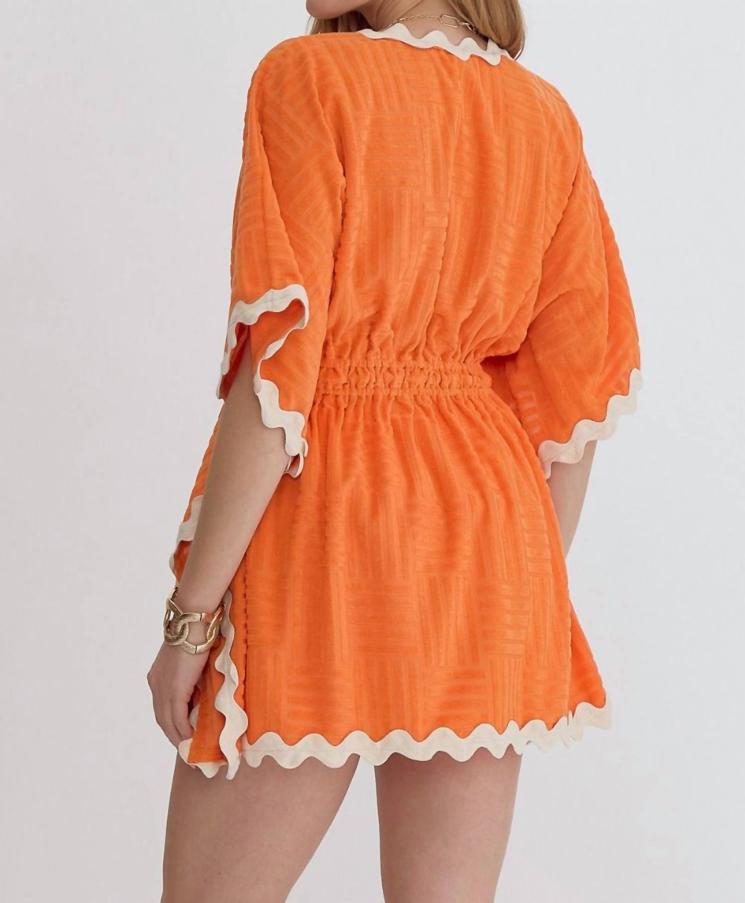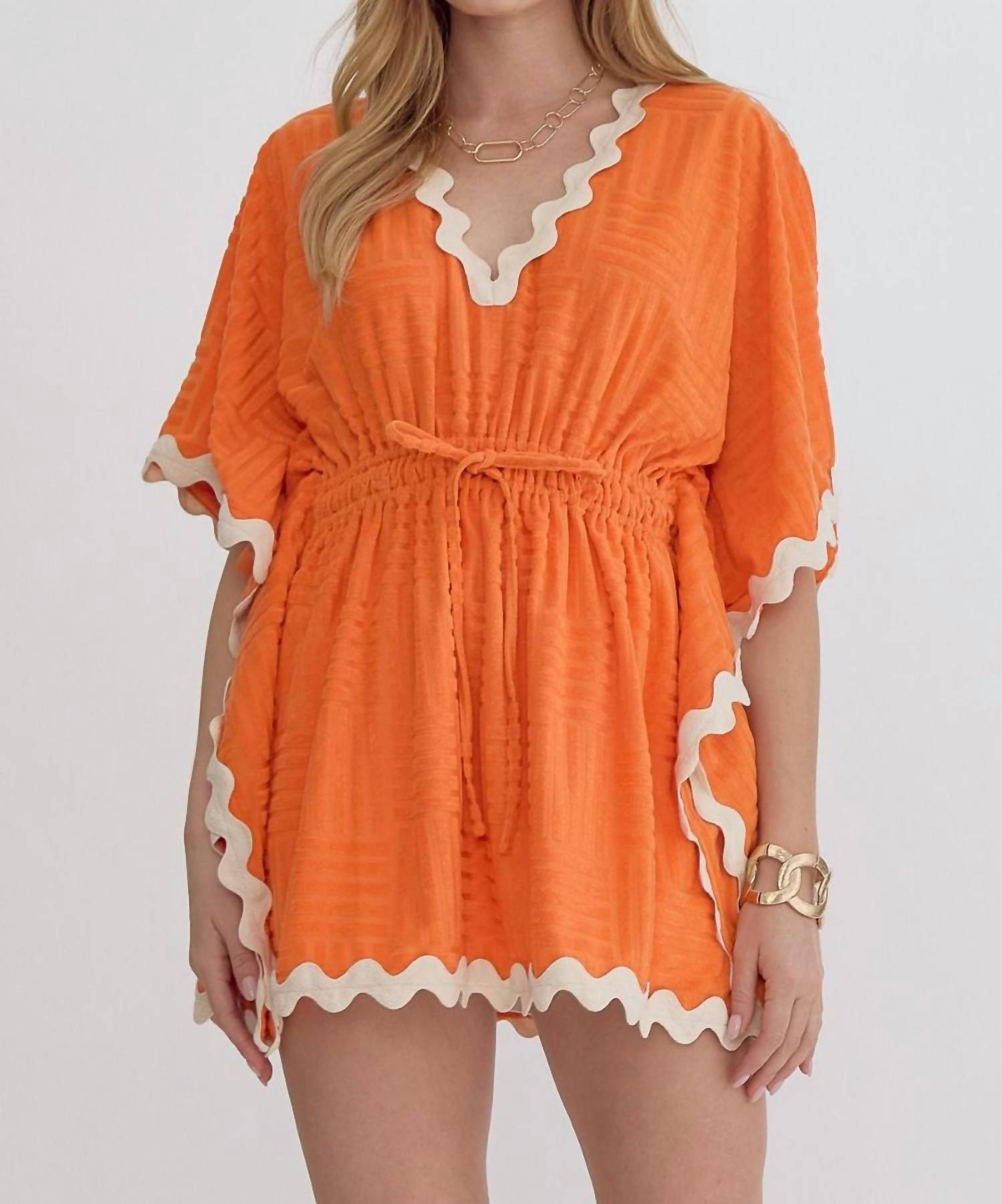 Você vai querer levar isso para as suas próximas férias! Apresenta um design texturizado e uma gola em V moderna com um charmoso acabamento ric-rac. O amarração e o cós elástico proporcionam um ajuste confortável e elegante. Sem forro. Lavável à máquina. 100% poliéster.