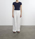 Crafted from 100% ultra-soft Supima cotton grown and made in the USA, our Supima Baby Rib Cropped Tee offers an exceptionally soft feel. This top features a fitted silhouette and framed by cap sleeves. Pair it with any of our high-waisted trousers.