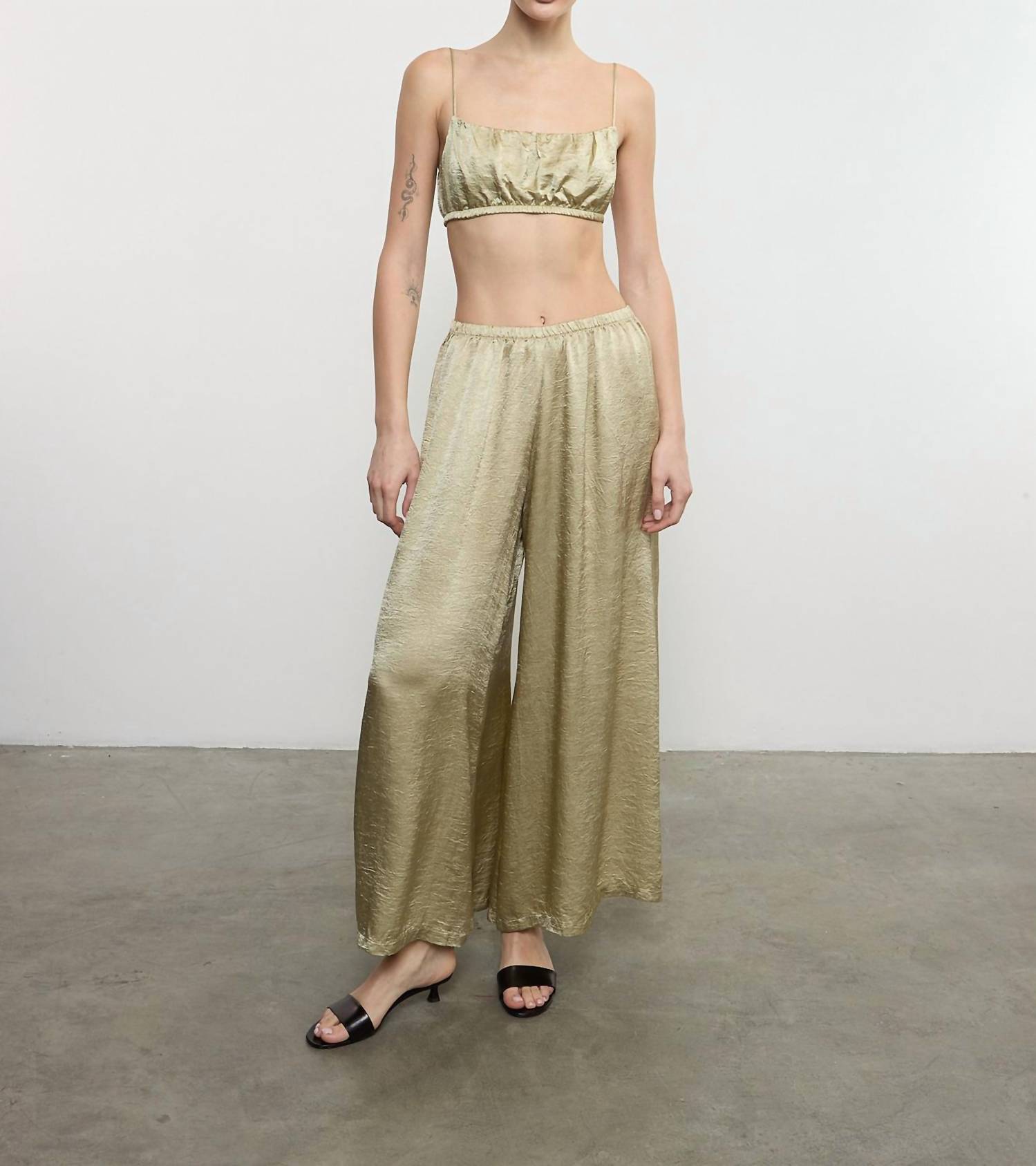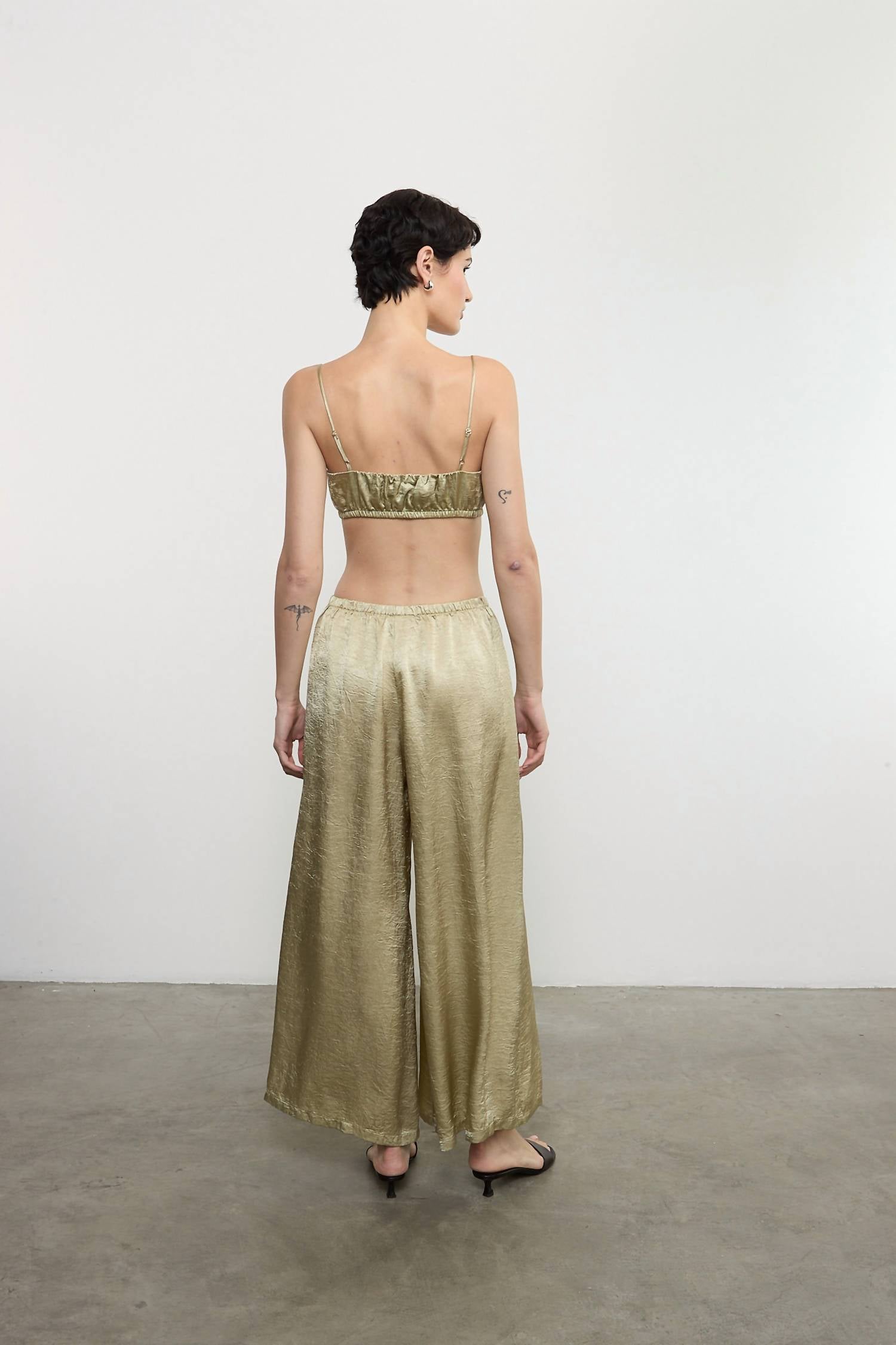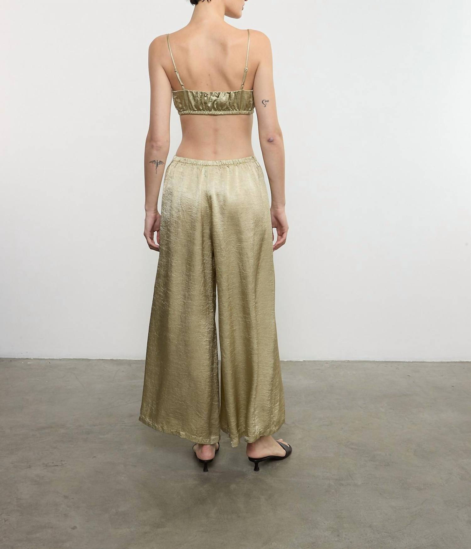 Show a little skin in this cute and casual crop top. The Textured Satin Bralette features adjustable straps with delicate metal sliders and an elasticized band for a flexible fit. Pair with the Textured Satin Palazzo Pant.