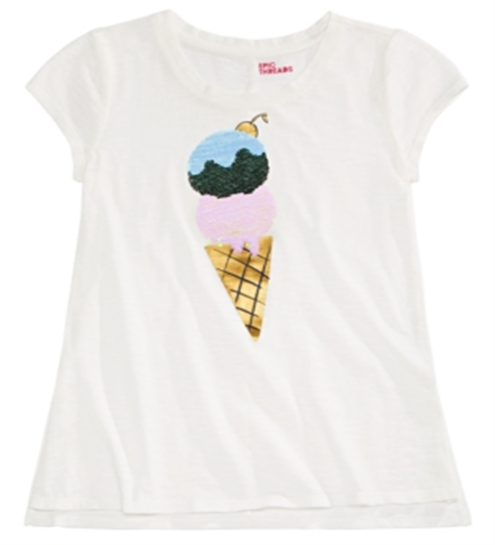 Camiseta de lantejoulas com estampa de sorvete para meninas grandes da Epic Threads, branca, tamanho P