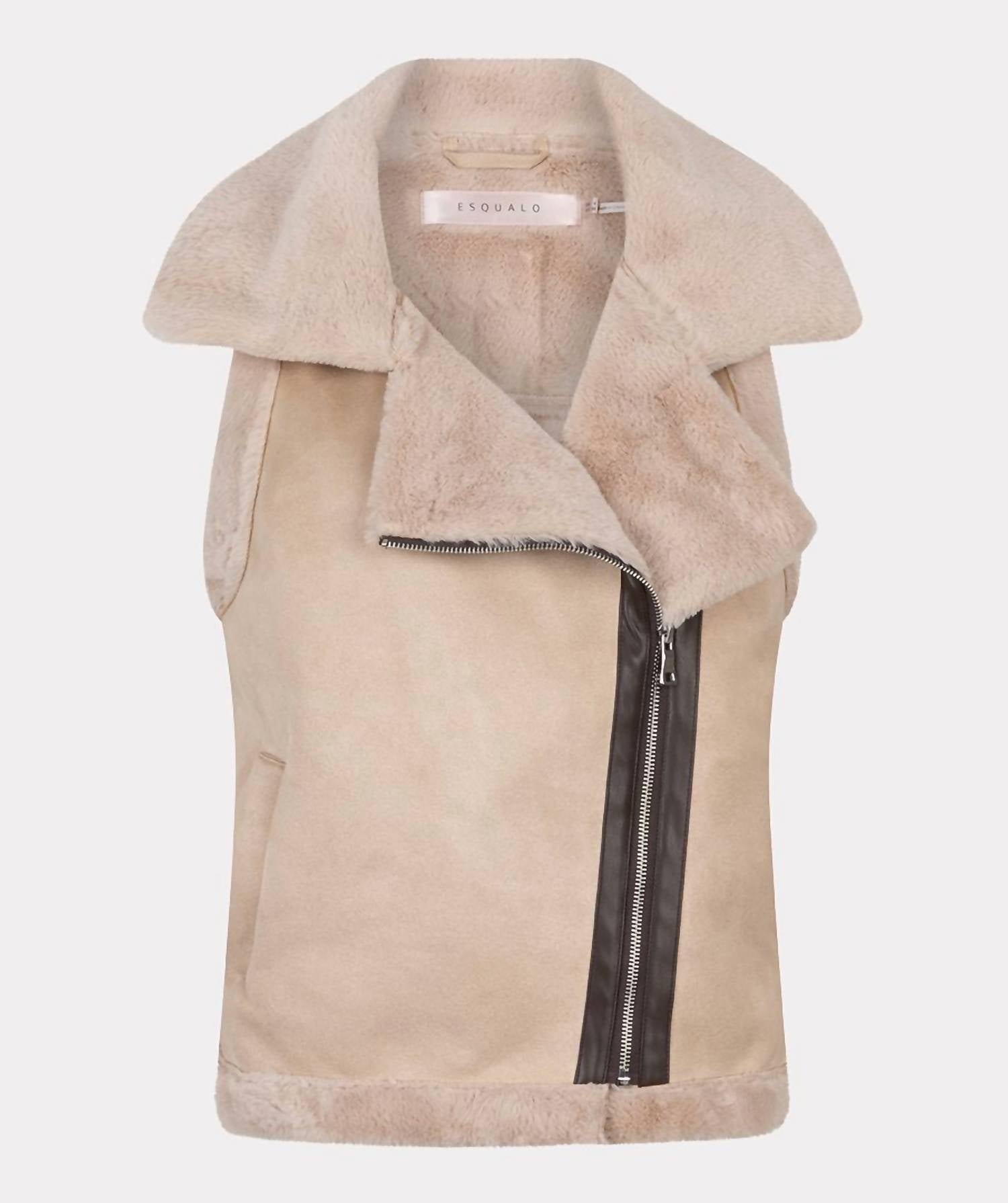 Esqualo - Fake Fur Suedine Gilet Jacket