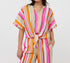 Knot blouse with summer stripe print made of 88% rayon and 12% nylon. Wear this blouse on white or blue jeans/shorts or cool as a set on the matching trousers.