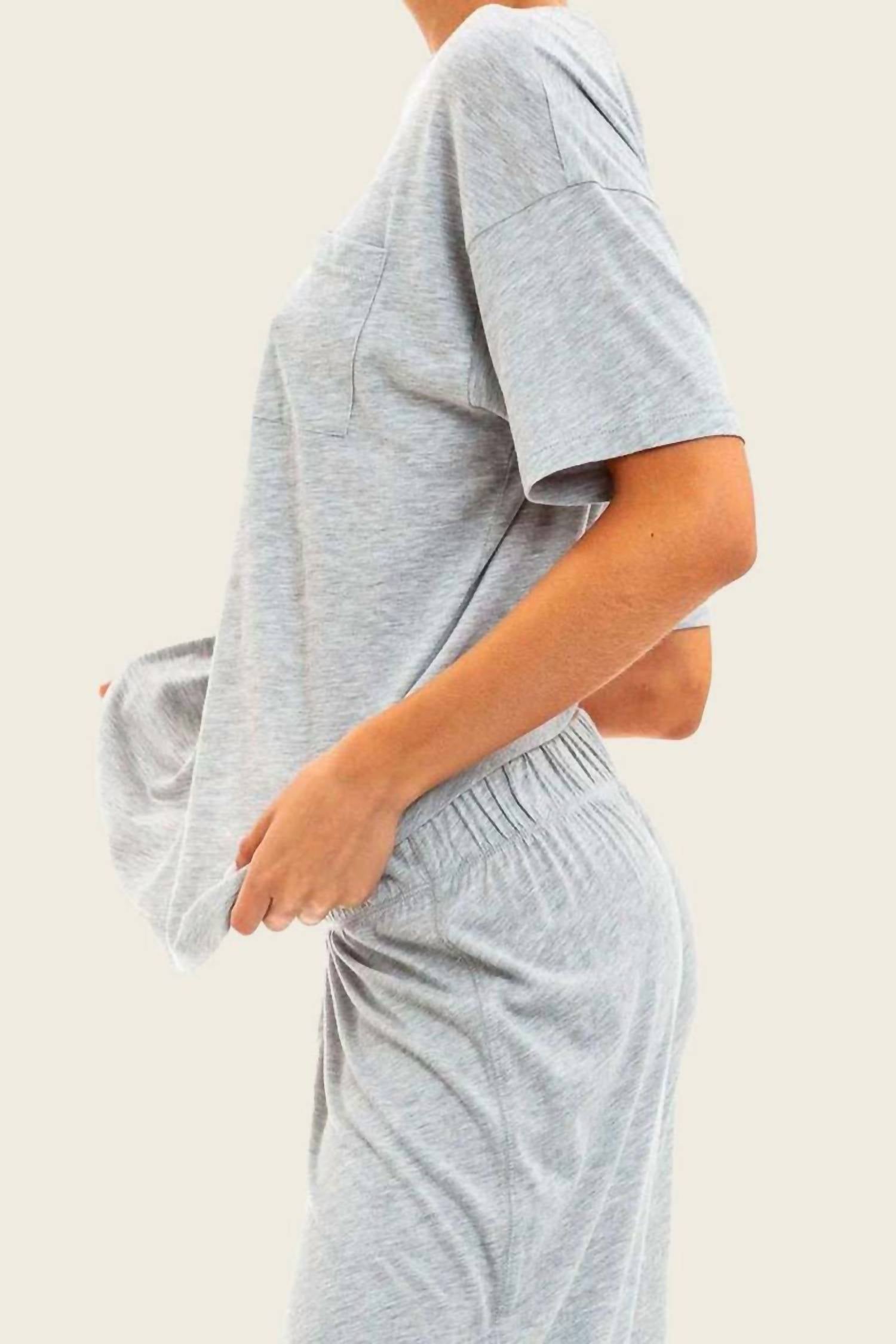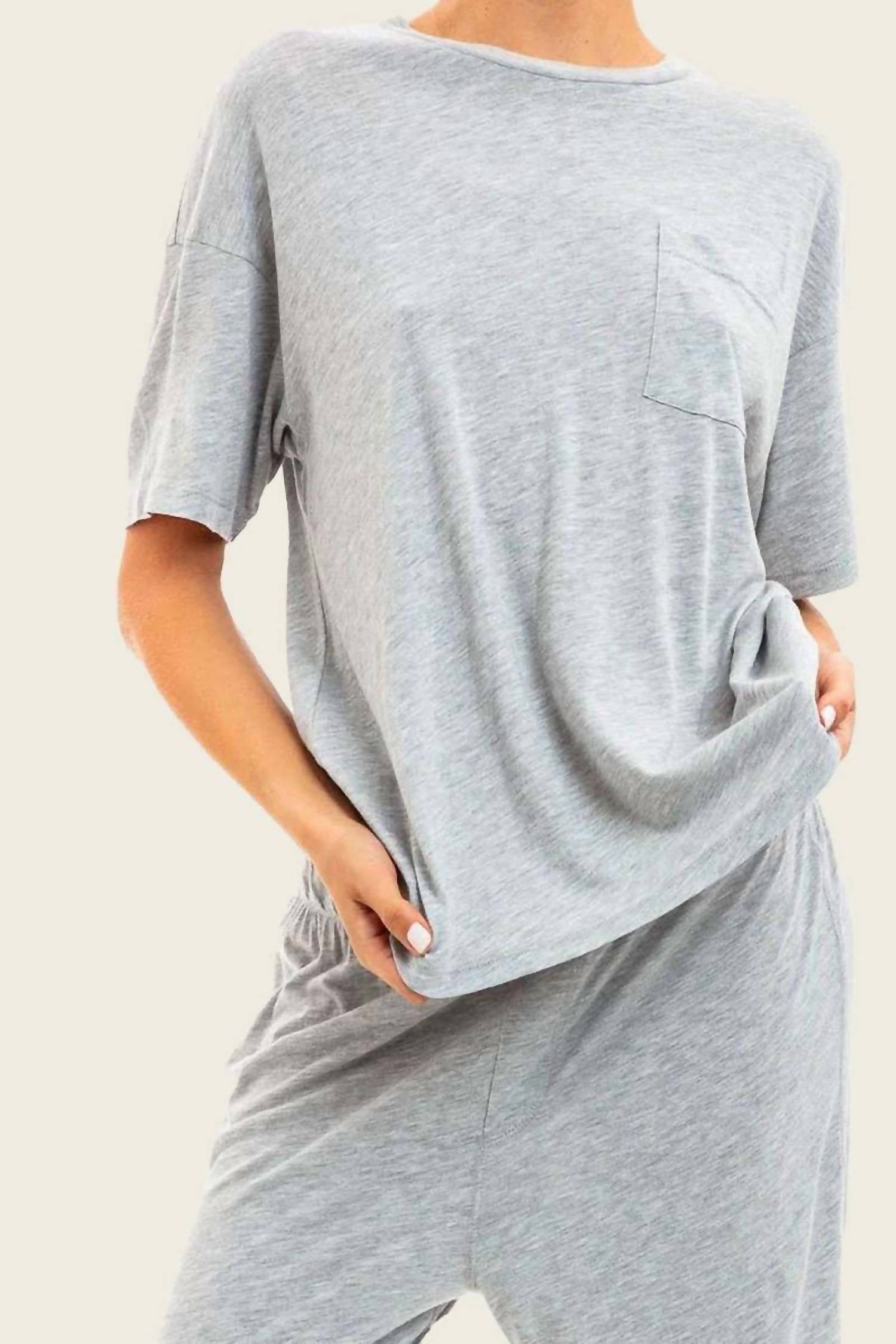 Elevate your casual wardrobe with the Boyfriend Pocket T Shirt by Eterne, showcasing a textured appearance in heathered grey. Crafted from a lightweight blend of 50% cotton and 50% modal, this tee offers a slightly loose fit with short sleeves for comfortable, everyday wear. Designed with a practical pull-on closure and convenient pocket detail, this shirt blends style with functionality. Care: Machine wash cold. Model is wearing a size S (177 cm / 5'10").