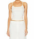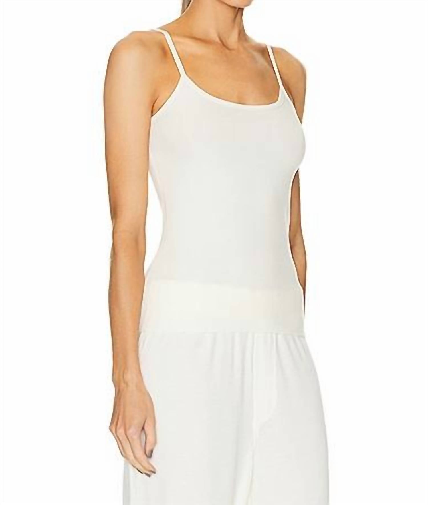 Introducing the Thin Strap Fitted Tank Top by Eterne, a must-have in cream for your everyday wardrobe. Designed with spaghetti straps and a scoop neckline, this solid preppy piece brings both style and comfort to your summer evening events. It features a pull-on closure for ease of wear. Care for this piece by hand washing and laying it flat to dry.