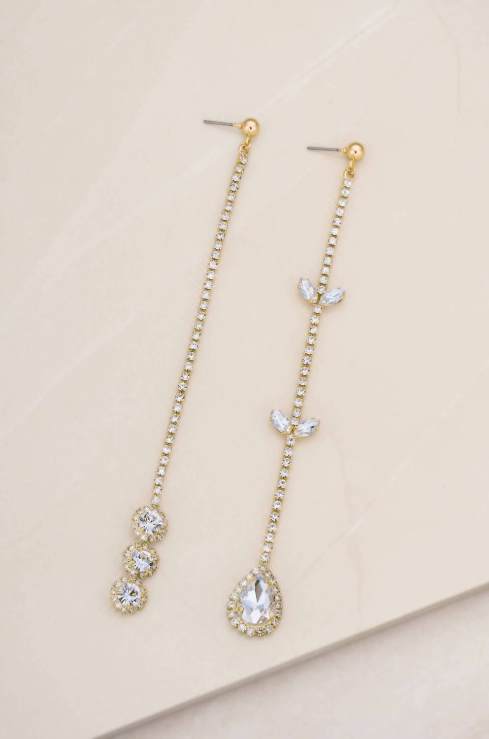Classic earrings that will take you from season to season. Presenting the Ettika Women's Mix It Up Crystal Asymmetrical Earrings, a stunning addition to your jewelry collection with their asymmetric design. These fine earrings are 18kt gold plated, featuring a 5.75" drop, and are accented with simulant diamonds in a vintage setting for added elegance. With a gold plating composition and post back closure, these earrings shine with round brilliant, white gemstones. Perfectly blending sophistication and style, they are the essence of modern glamour in gold.