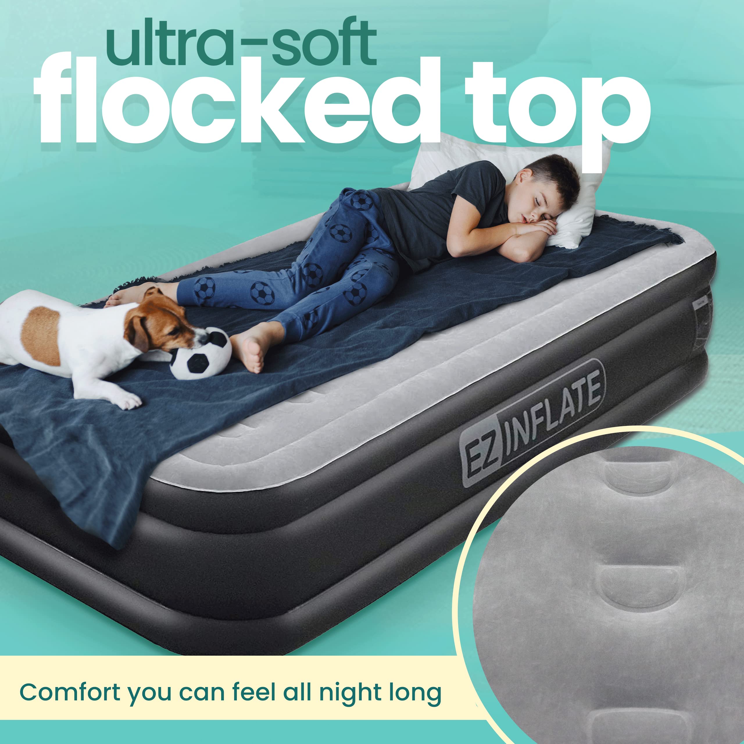 • DUPLO ALTO - Este colchão inflável de 40 cm de altura tem um topo flocado premium e ultramacio para estabilidade antiderrapante onde quer que você descanse a cabeça. A tecnologia Coil Beam proporciona conforto e suporte de colchão de verdade.
