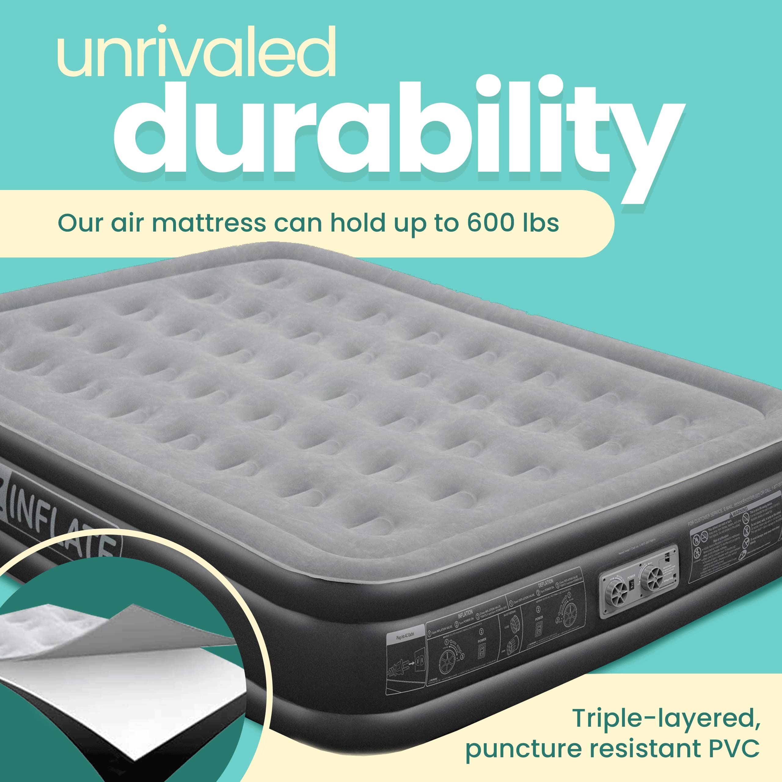 • À PROVA D'ÁGUA - À prova d'água e resistente a perfurações, nosso colchão de ar é feito de PVC durável de três camadas.