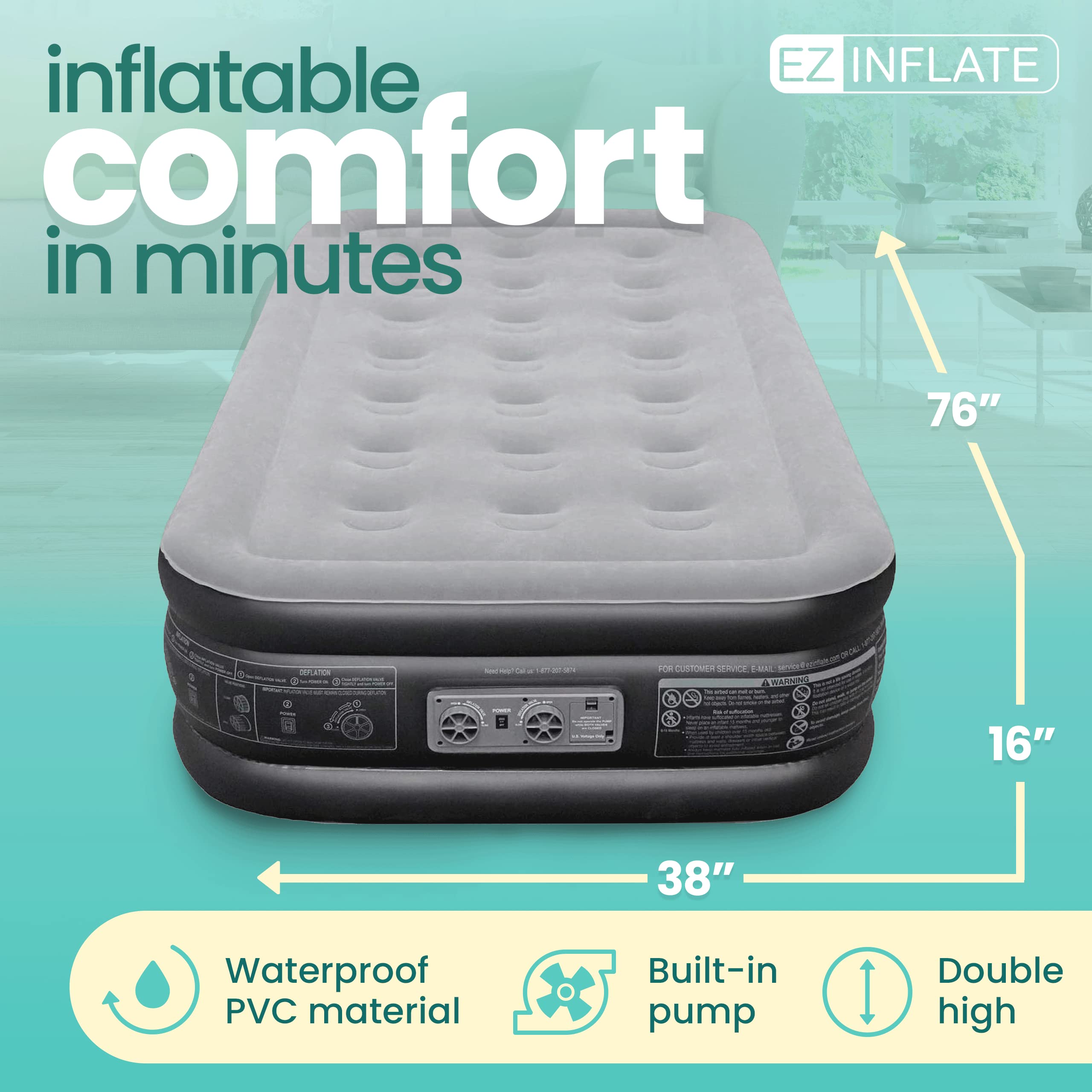 • INFLAÇÃO RÁPIDA - Veja como nosso luxuoso colchão de ar com bomba embutida infla em 2 minutos ou menos! Seja para acampar ou dormir fora, esta cama inflável vai fazer você dormir em segundos.