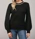Elevate your style with the Fate Chain Trimmed Open Back Sweater, a statement piece in sleek black. This sweater features long bubble sleeves and a striking open back, accentuated by a delicate rhinestone chain detail. Crafted with a blend of 50% Polyester, 20% Acrylic, 20% Nylon, and 6% Wool, it offers comfort and sophistication. Closure: Pull on. Care: Machine wash. Perfect for a special dinner party or an Easter gathering, it's designed for those seeking a blend of elegance and trend.