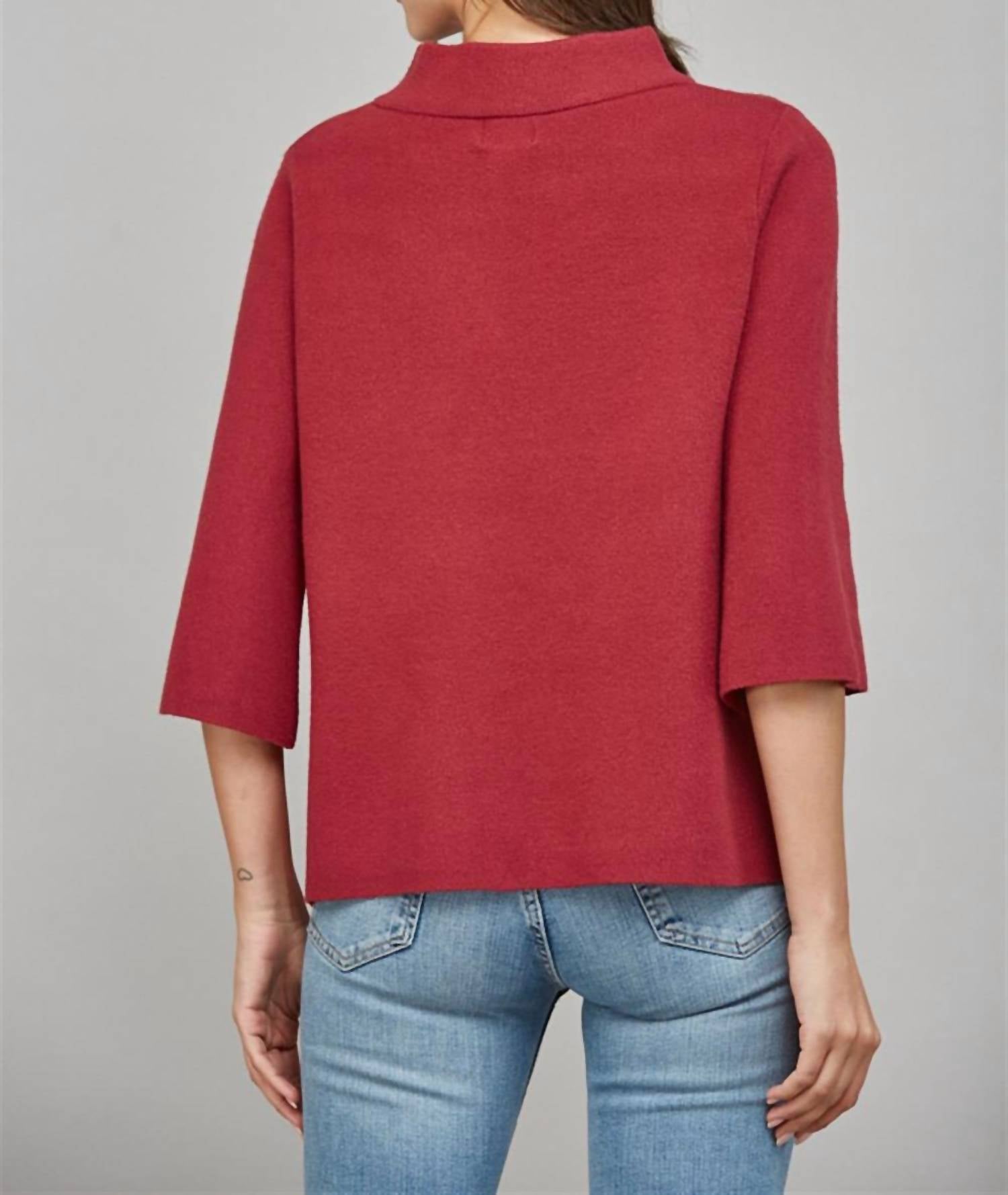 Elevate your fall wardrobe with the Pepper Mock Neck Sweater by Fate, perfect for cooler summer evenings in Deep Rose Madder. Featuring elegant three-quarter bell sleeves, this pullover top is crafted from a luxurious blend of 55% viscose and 45% nylon, measuring a comfortable 23.5 inches in length. Designed without pockets, its mockneck adds a minimalist touch, ideal for travel or casual gatherings. Closure: Pull on. Care: Hand wash. Available in bust sizes: (S) 40", (M) 42", (L) 44".