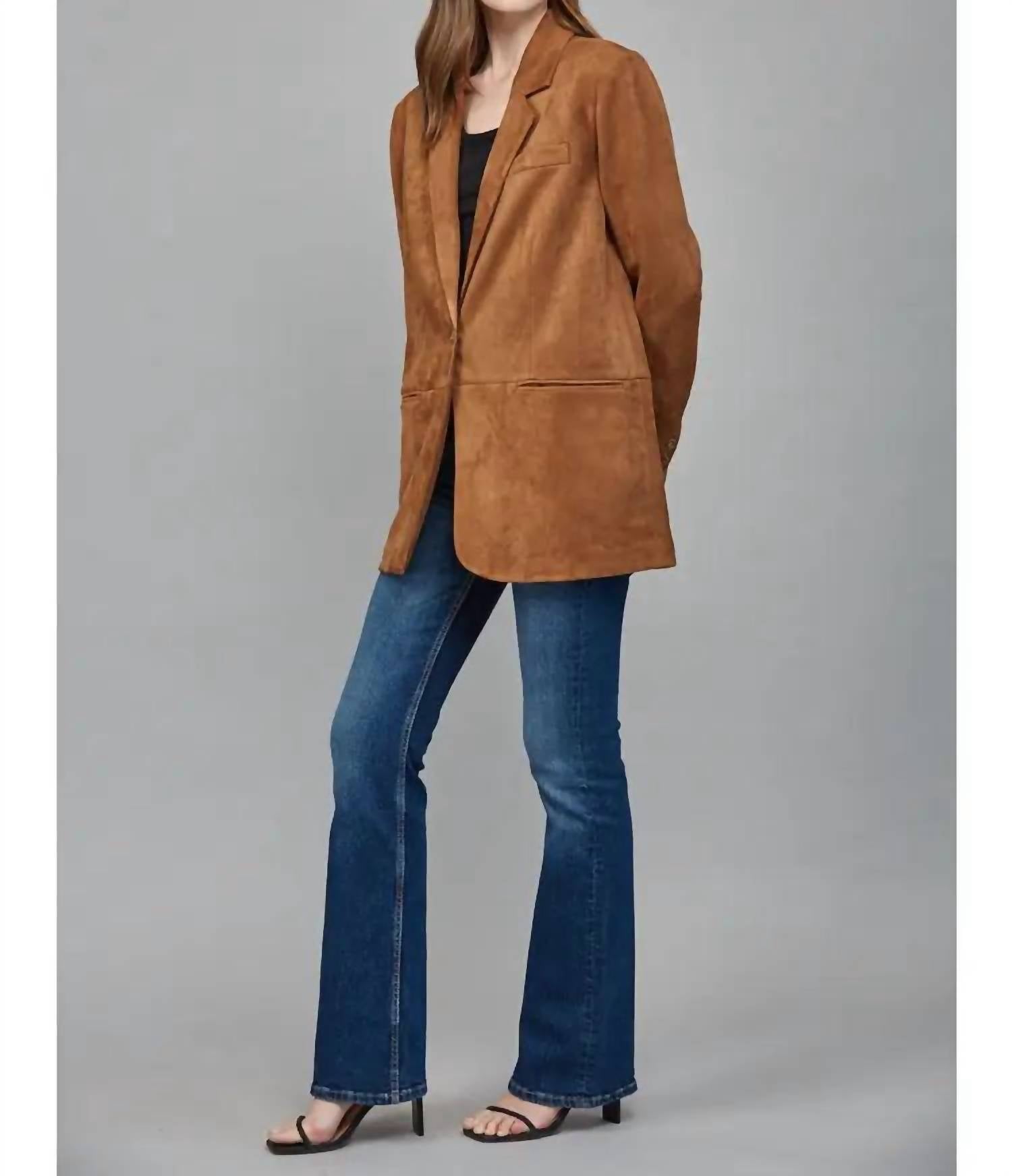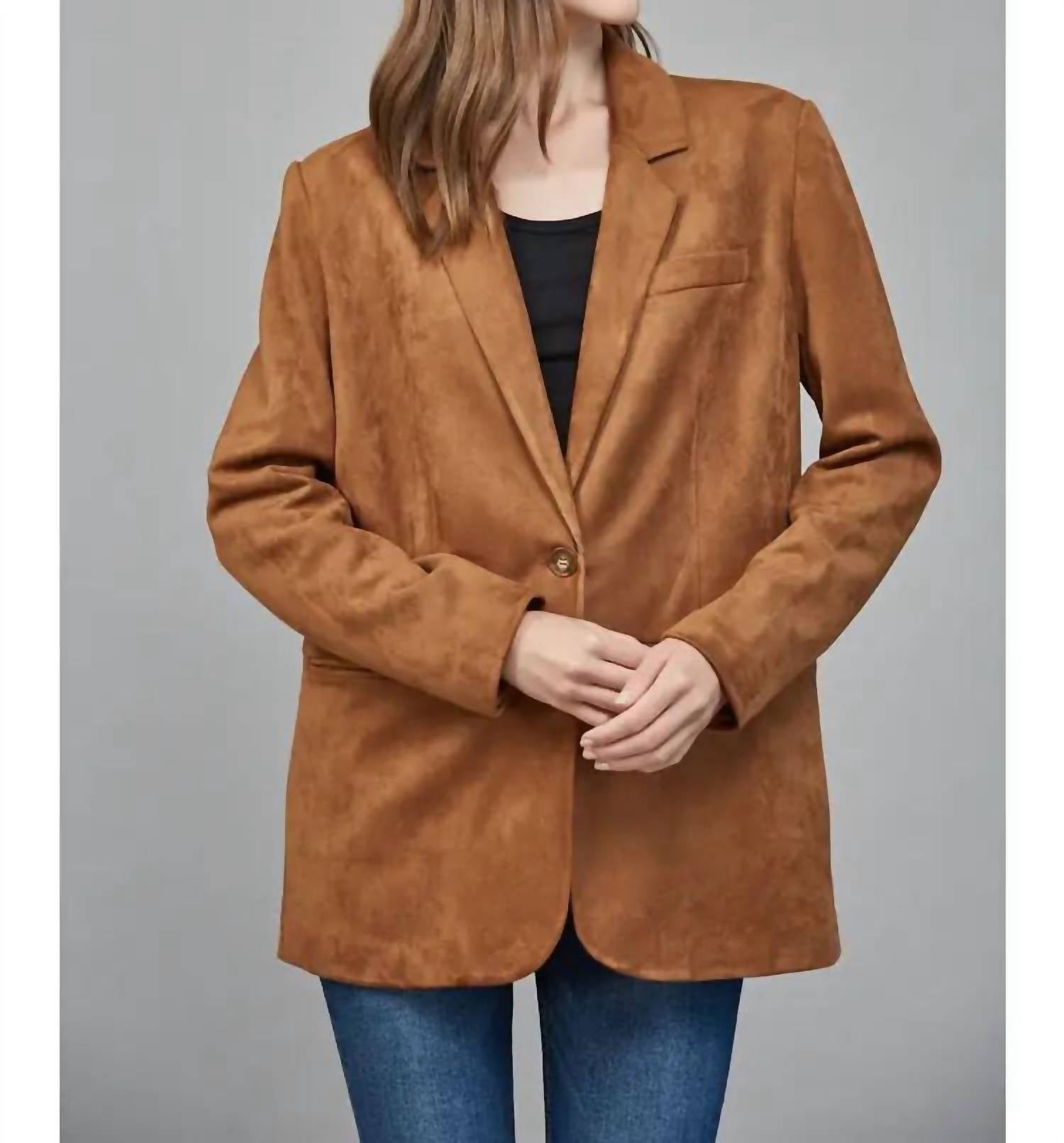 Elevate your wardrobe with the Relaxed Fit Blazer by Fate, a timeless piece in a rich cognac hue designed for effortless sophistication. This women's blazer boasts long sleeves and an oversized silhouette that falls below the hip, crafted from soft polyester for a refined matte finish (Self: 96% Polyester, 4% Spandex; Liner: 97% Polyester, 3% Spandex). This lined blazer features sharp lapels, front pockets, and clean tailoring, with a button closure to complete the look. Perfect for workwear, it complements any ensemble from denim to dresses. The model is 5'9" and wearing a small. Dry cleaning is recommended.