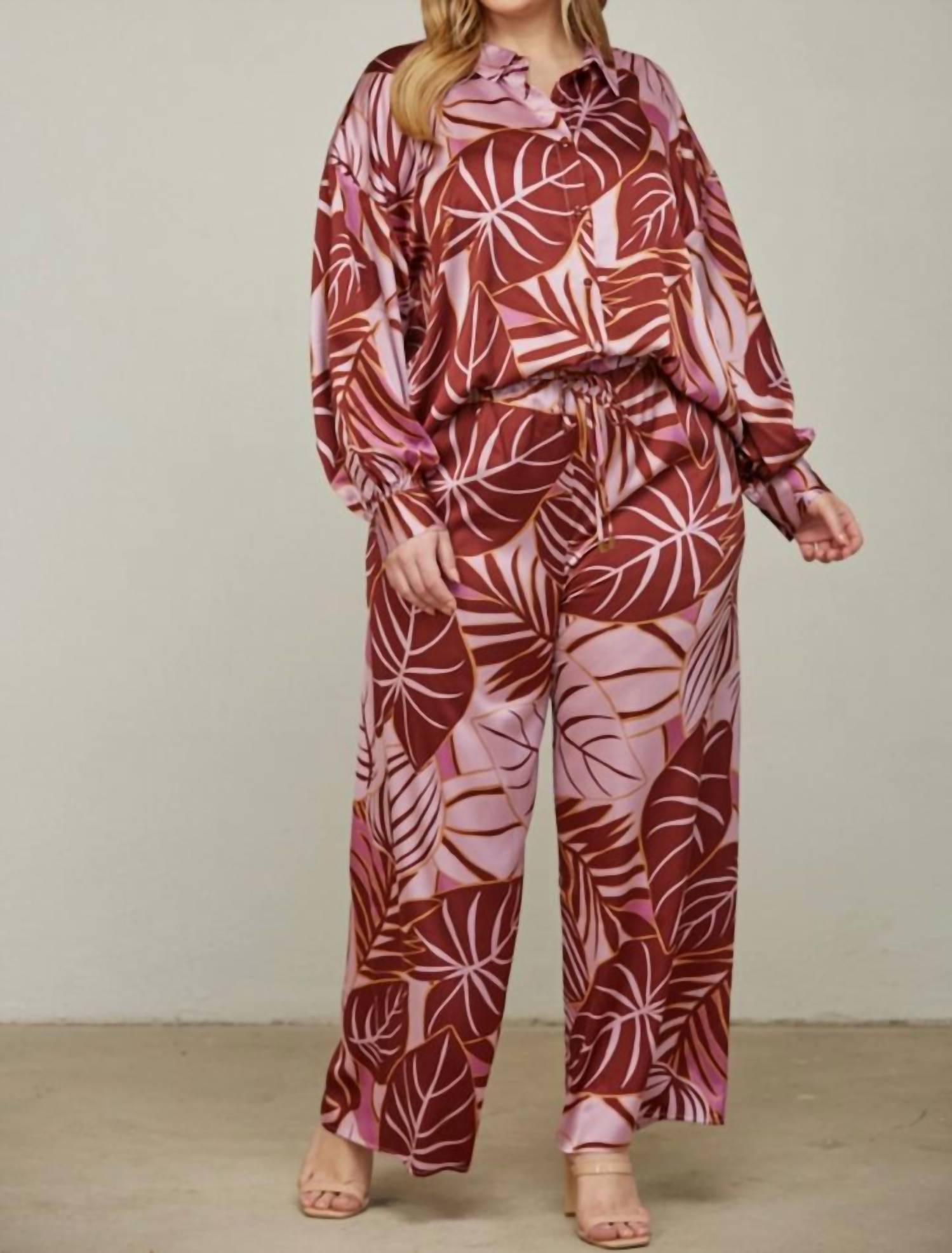 Step into vibrant elegance with the Tropical Print Satin Pants by Fate, perfect for embracing a boho chic look this spring. Made from luxurious satin, these multi-colored, patterned pants offer a relaxed fit with a flattering straight leg style and a convenient pull-on closure. Ideal for a holiday party or a Thanksgiving celebration, these pants can effortlessly be styled for any festive occasion. Please note there are no washing or drying instructions available for this product.