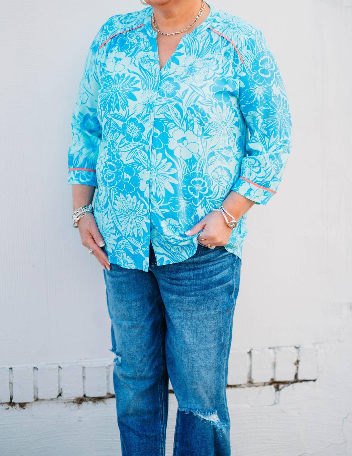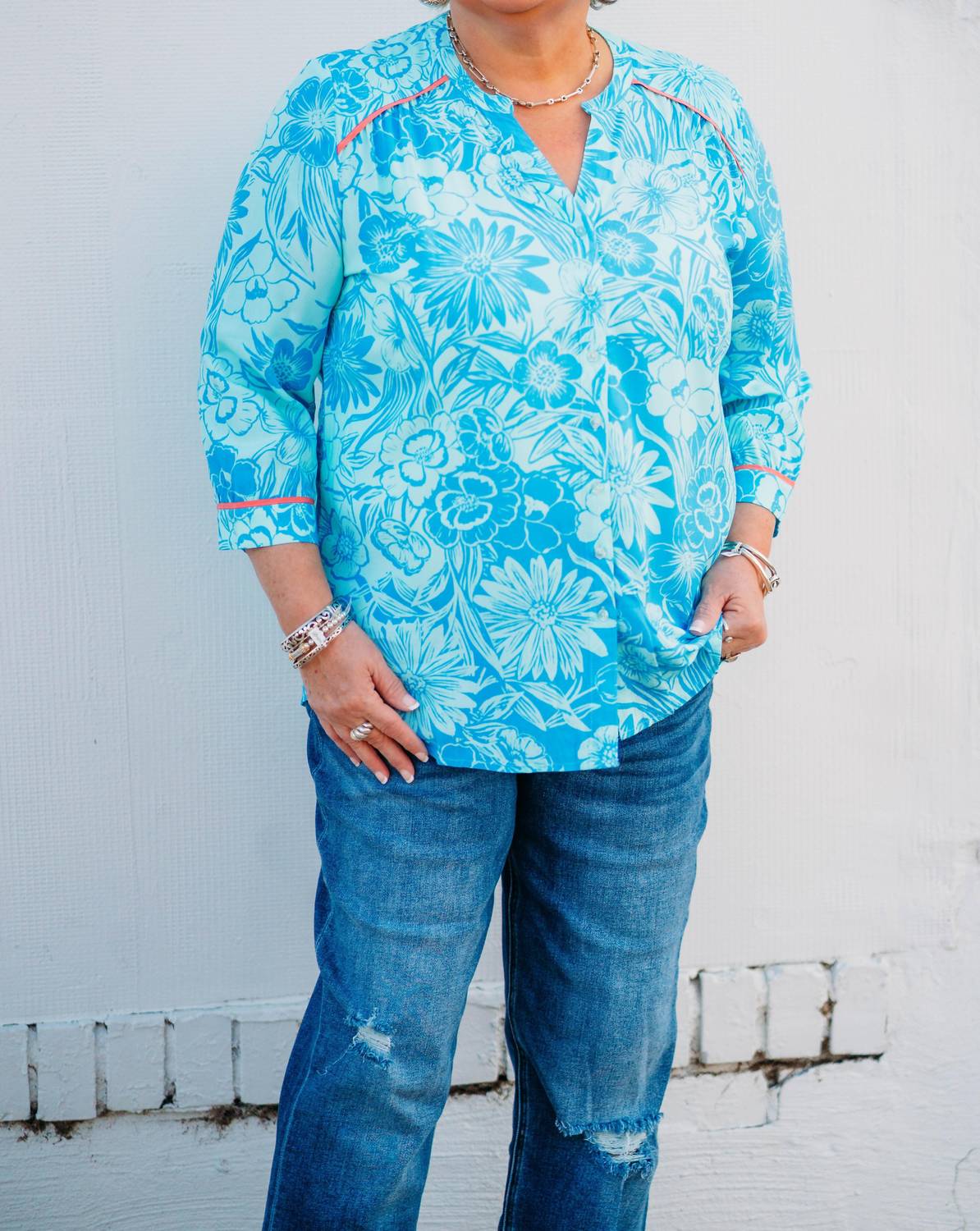 Uma blusa atemporal que nunca sai de moda. Entre na sofisticação com a Blusa Floral Bicolor FDJ, uma peça deslumbrante confeccionada em um elegante padrão floral. Com mangas três quartos e um decote em V charmoso, esta blusa adiciona um toque de charme aos seus encontros de verão ou saídas à igreja. Ideal para mulheres que buscam estilo e versatilidade. Embora não sejam fornecidas instruções específicas de cuidado, manuseie com cuidado para uma durabilidade duradoura.