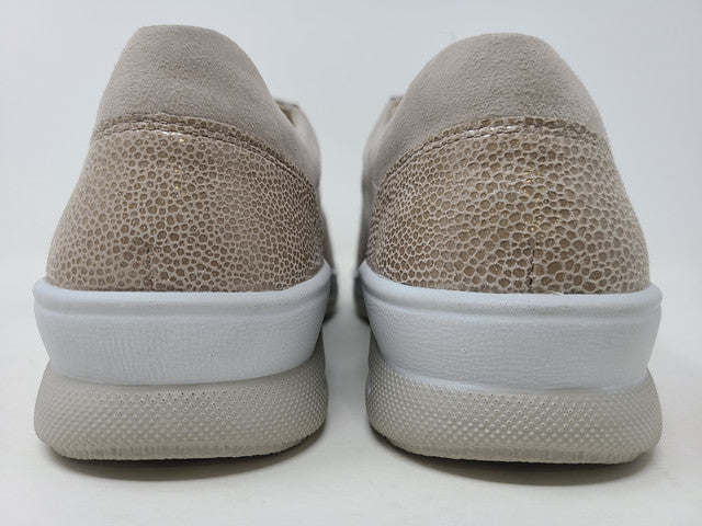 O sapato casual de couro feminino Fidelio Hallux Haley tem cabedal feito de couro curtido vegetal macio com camurça e painéis estampados nas laterais, adicionando grande personalidade. O tênis Hayley possui cadarço frontal e zíper para facilitar o calçar e descalçar, além de um ajuste ajustável, enquanto a palmilha elástica acolchoada Hallux oferece conforto nos pontos de pressão dos pés.
