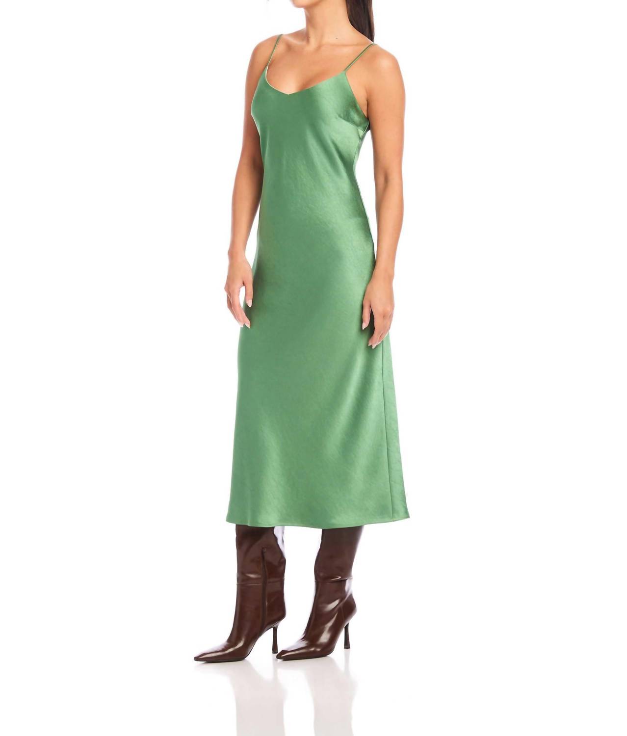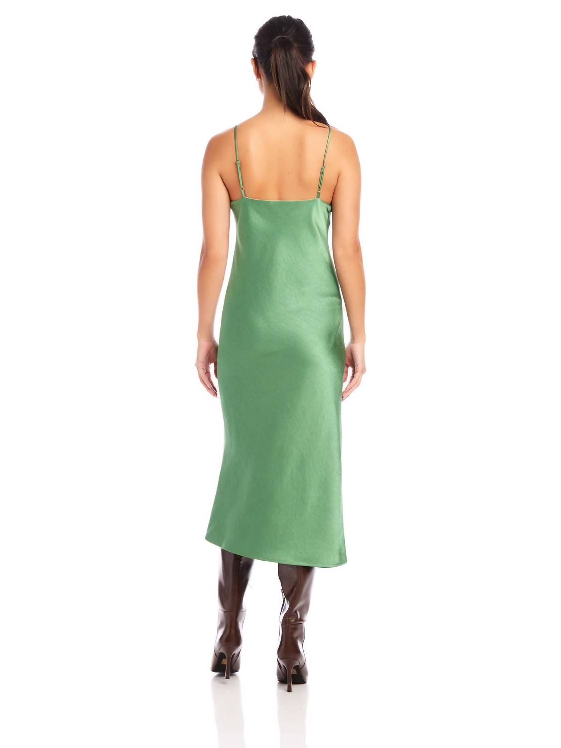 Eleve seu guarda-roupa com o Vestido Midi Bias Slip da Fifteen Twenty em um tom sereno Sage. Com alças finas ajustáveis e um decote em V charmoso, este vestido é habilmente confeccionado em cetim 55% poliéster e 45% poliéster reciclado, exibindo sustentabilidade em grande estilo. Com 124 cm de comprimento no tamanho P, veste facilmente e é forrado para garantir conforto. Orgulhosamente fabricado nos EUA com tecido importado, ele incorpora luxo e elegância discretos. As instruções de cuidado recomendam apenas lavagem a seco.