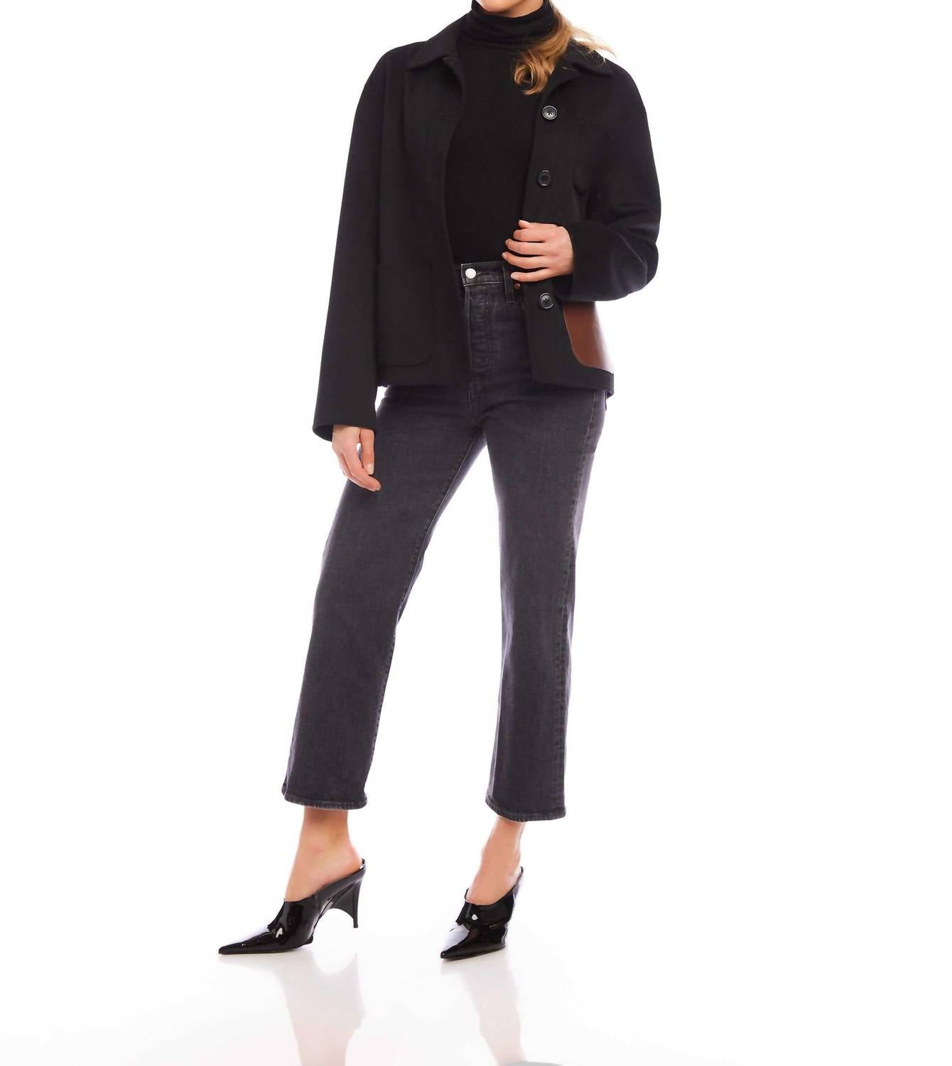 Uma versão da sua jaqueta bomber clássica favorita. Eleve seu guarda-roupa com a Jaqueta Ludlow Button Down da Fifteen Twenty, com mangas compridas e um elegante decote com gola. Confeccionada em uma luxuosa mistura de lã, composta por 51% lã e 49% poliéster, esta jaqueta preta personifica o luxo discreto com seu marcante padrão de listras e um bolso exclusivo em couro sintético contrastante com detalhe em chaveiro. A peça mede 60 cm de comprimento no tamanho P e possui fecho de botão para um visual sofisticado, tornando-a perfeita para diversas ocasiões, desde reuniões de Ação de Graças até eventos noturnos. Importada para qualidade superior, lembre-se de lavar a seco e secar na horizontal para manter sua condição premium.