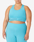 O decote alto ajuda a segurar você em todos os níveis de exercício com este sutiã esportivo Fila plus size brilhante. | Sutiã esportivo de alto impacto, ideal para corrida e aeróbica intensa | Decote redondo | Bojos removíveis; costas nadador | Forrado | Poliéster/elastano; forro de malha; poliéster | Lavável à máquina