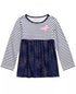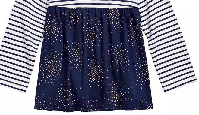 Túnica listrada de algodão para bebê menina First Impressions, manga longa, confete, branca, tamanho 3 a 6 meses