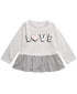 Decote redondo | Estampa gráfica 'LOVE' na frente; bainha peplum com estampa xadrez | Algodão/poliéster | Lavável à máquina | Importado