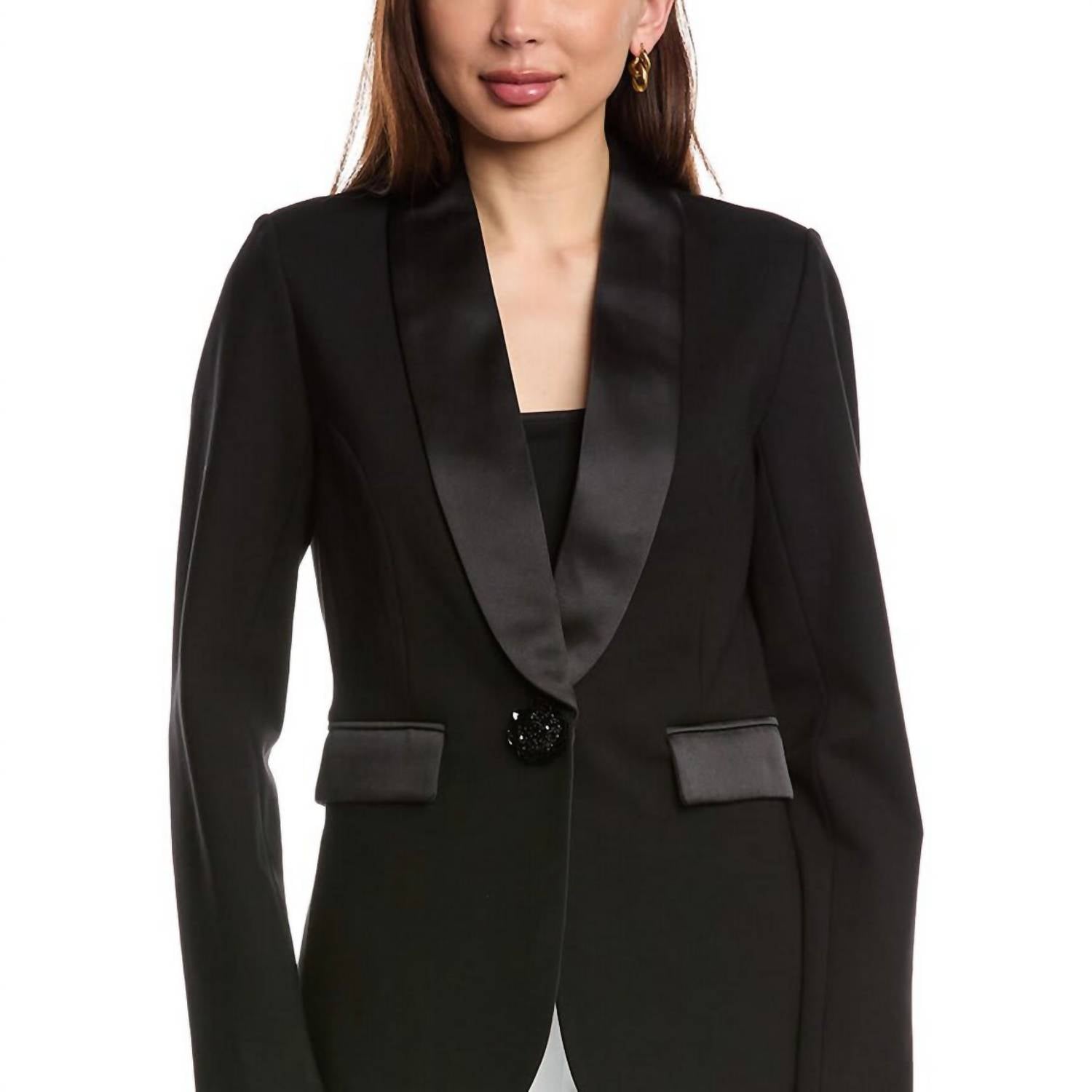 A blazer so versatile you can wear it to the office or pair it with jeans for a more casual look. The Charlene Blazer is a sophisticated wardrobe staple featuring a tailored silhouette with two faux front pockets and a beaded embroidered button for subtle elegance. Measuring approximately 27 inches from shoulder to hem, it is crafted with a shell of 100% polyester and a lining of 92% polyester and 8% spandex, offering both style and comfort.