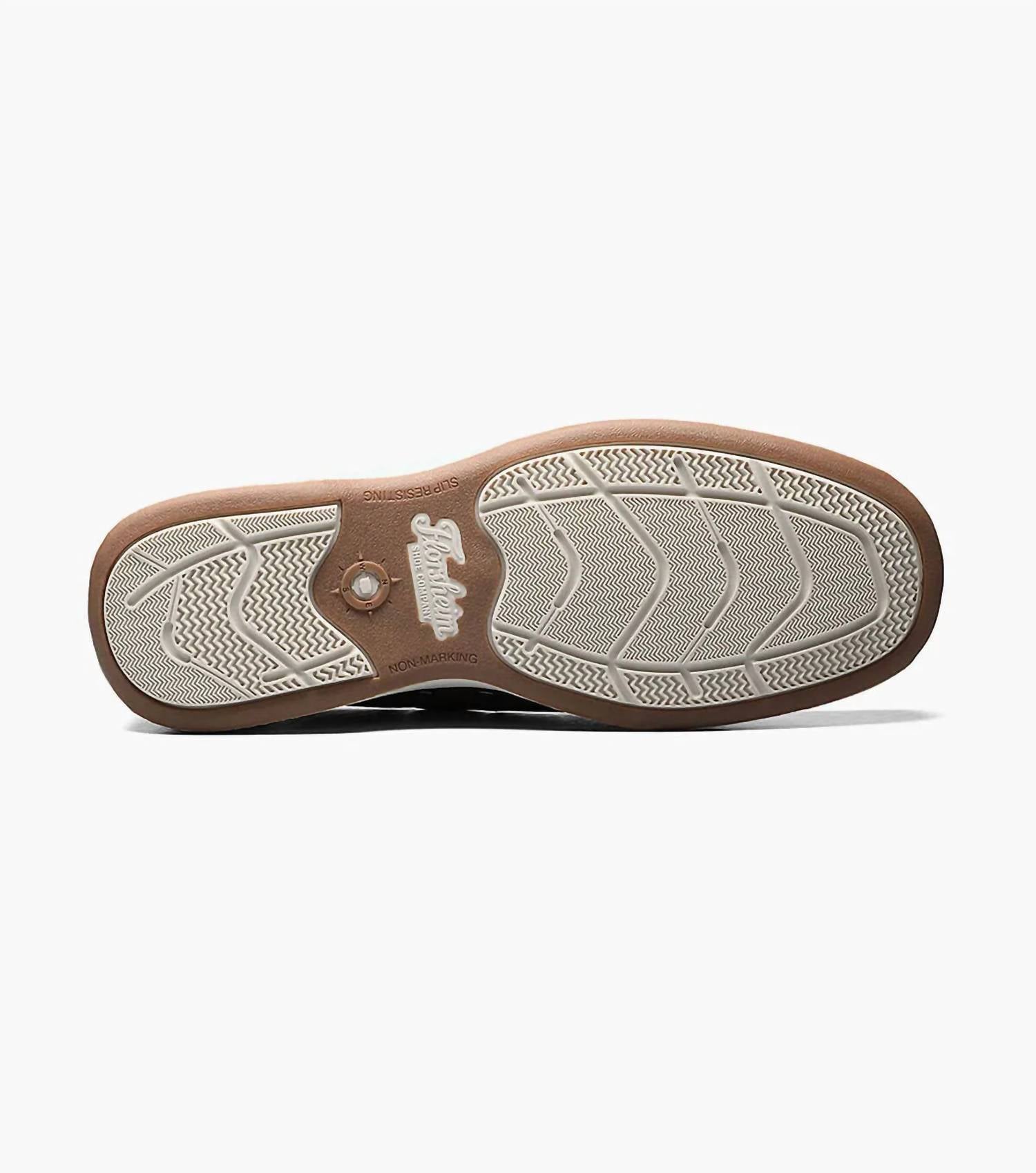 Step into comfort and style with the Men's Lakeside Moc Toe Slip On Shoes by Florsheim, perfect for an active lifestyle with a fashionable twist. Crafted from leather, these shoes boast a breathable Suedetec lining and a fully cushioned footbed for all-day comfort. The durable rubber sole features a wedge design with grip-enhancing siping, ideal for a secure step. Elevate your dinner party ensemble this spring with these brown, flat-heeled loafers, embracing a nod to 90s fashion.
