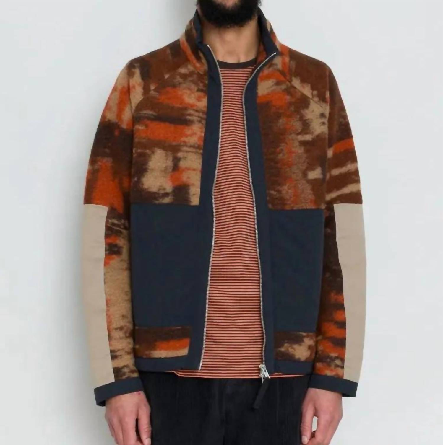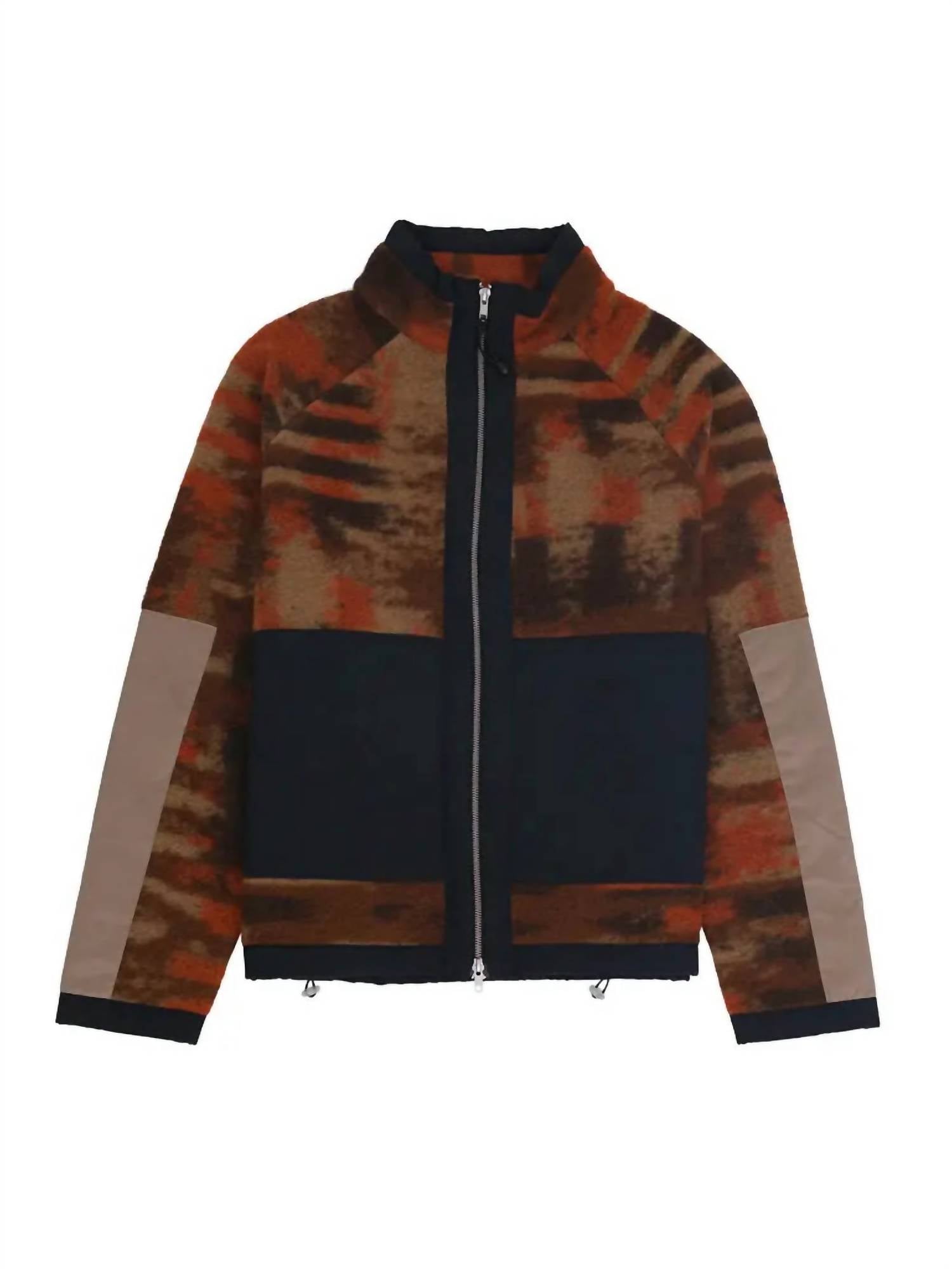 Unveil relaxed style with the Signal Fleece Jacket by Folk, perfect for streetwear aficionados. This men's jacket features long raglan sleeves and a funnel neck collar, crafted from a unique 65% wool and 35% polyester blend jacquard fabric in varied blue tones. Made in Portugal, it boasts a two-way brushed silver zip closure, in-seam pockets, and an adjustable elastic shock cord hem. Care is simple with hand wash cold and line drying, making it an ideal choice for fall travel occasions.