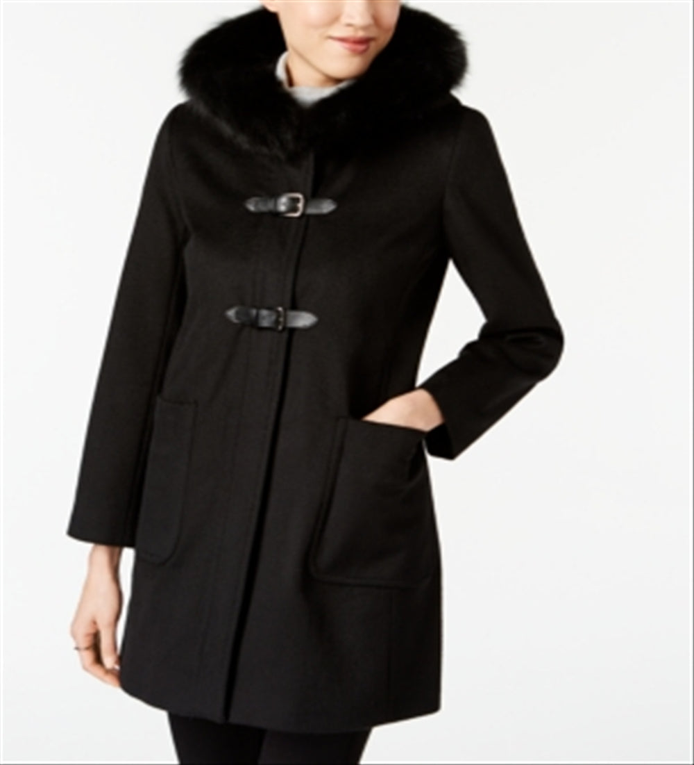 Forecaster Casaco feminino com acabamento em pele de raposa e fivela Walker, preto, tamanho 16