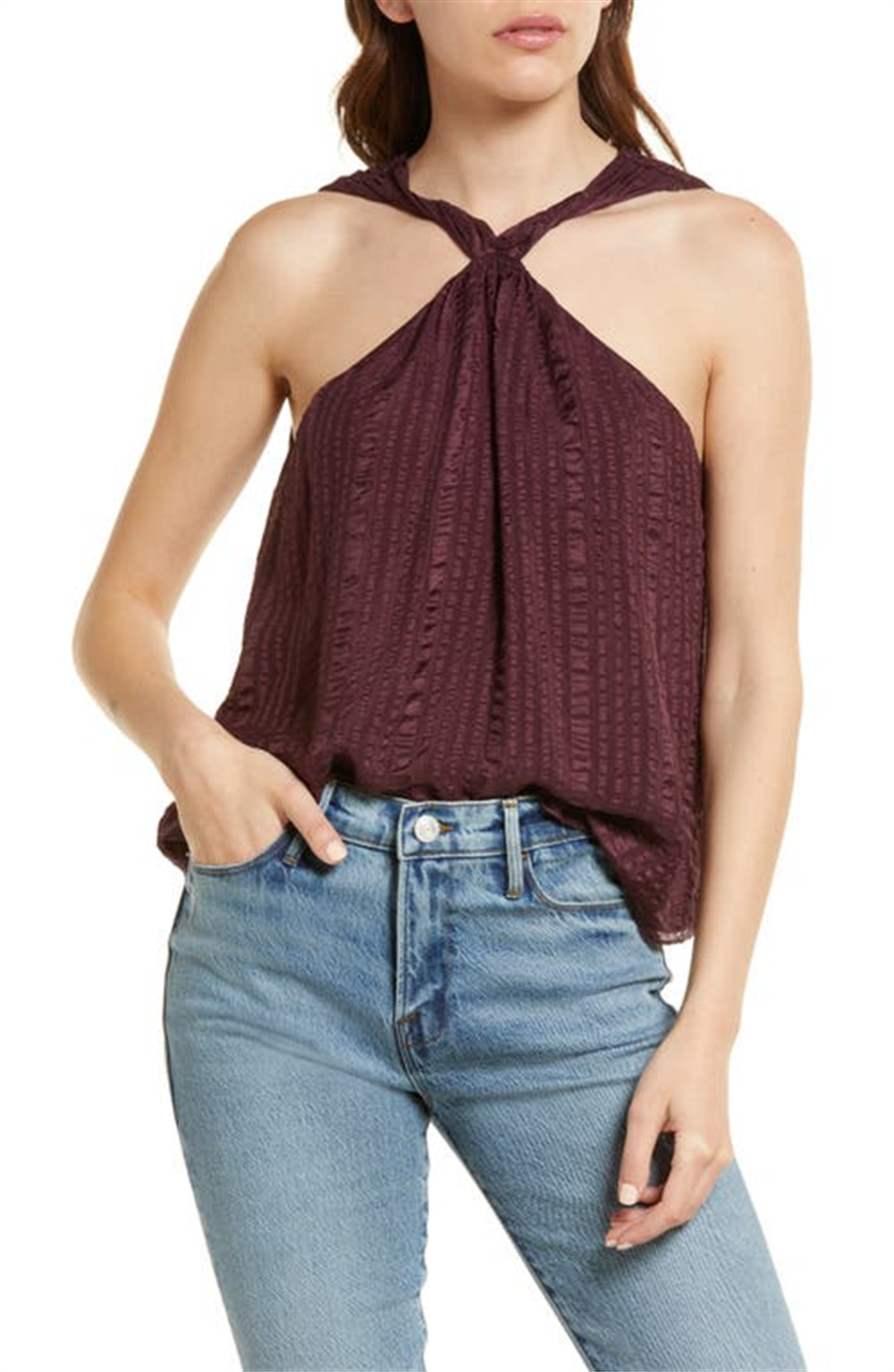 Top Halter de Seda Texturizada Drapeada FRAME em Cabernet, Tamanho X-S