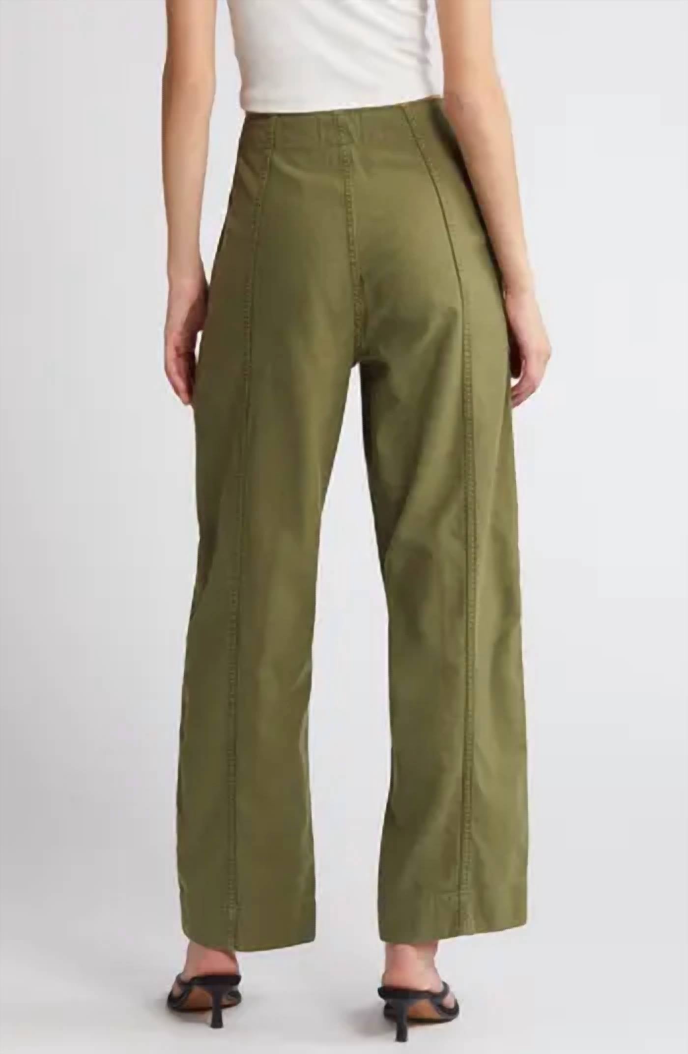 High-waist is here to stay and we especially love this style.Blend of comfort and contemporary fashion. Redefine casual sophistication with their ultra-high rise and unique barrel fit. Offering a silhouette that's both flattering and effortlessly chic. Crafted from rigid twill. Rich Washed Winter Moss. Featuring angled flap pockets for a functional twist. Maintain a minimalist elegance. Hook and eye closure ensures a secure fit. Solid pattern keeps the look polished. Perfect fusion of style and comfort.