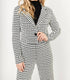 Discover the Frank Lyman Cropped Houndstooth Knit Jacket, a sophisticated choice in black and white designed for the professional woman. With long sleeves and a striking houndstooth pattern, this jacket features a notched collar and a bold button closure. Composition: 60% Nylon, 30% Rayon, 8% Polyester, 2% Elastane. Made in Canada, it measures an approximate length of 25 inches. Care: Hand wash and lay flat to dry.