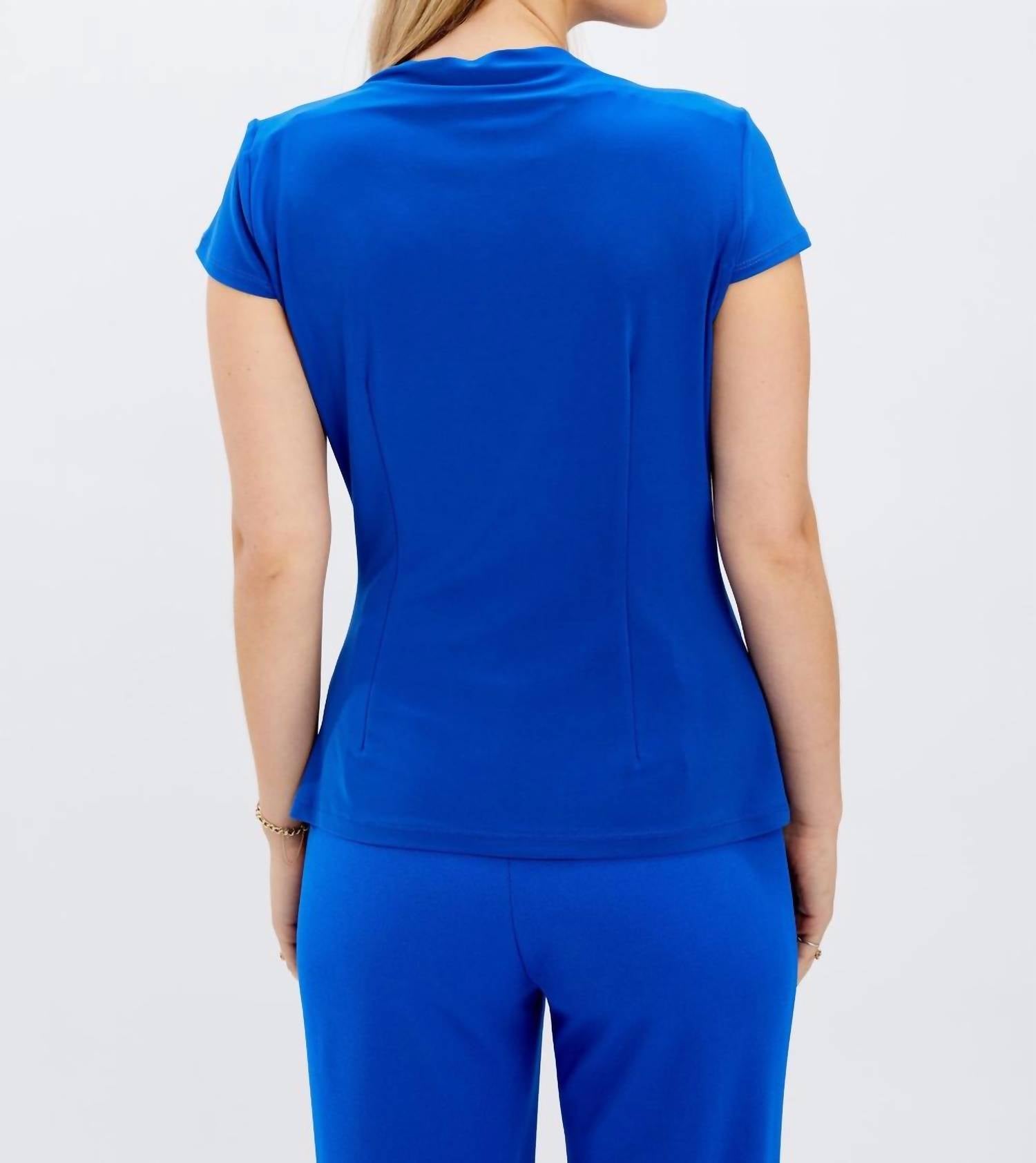 Apresentamos a Blusa Frank Lyman com Frente Franzida, uma blusa elegante em um azul royal marcante. Com mangas curtas, esta peça é confeccionada em uma mistura de 95% poliéster e 5% elastano, oferecendo conforto e um caimento impecável. Possui 60 cm de comprimento, o que a torna versátil para diversas ocasiões. As instruções de cuidado sugerem lavagem à mão e secagem no varal para manter sua aparência sofisticada.