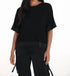 Introducing the Frank Lyman Hip-length Top, a chic addition to your wardrobe in classic black. Crafted from 95% Rayon and 5% Elastane, this blouse offers a loose fit, boat neckline, and wide short sleeves, perfect for various occasions. The approximate length of this garment is 27 inches, featuring a button closure for easy wear. For care, please hand wash this versatile piece to maintain its elegant silhouette.